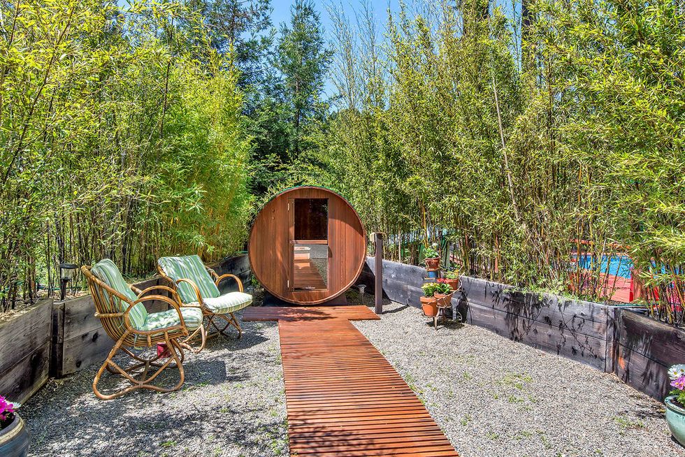 A tree house with a heated pool, spa, and a sauna for two? Sign us up. Situated in Occidental near Salt Point and Sugarloaf Ridge state parks, this woodsy stay with two single beds sits atop an old redwood tree stump and promises a bird's eye view of the endless cosmos come nightfall.