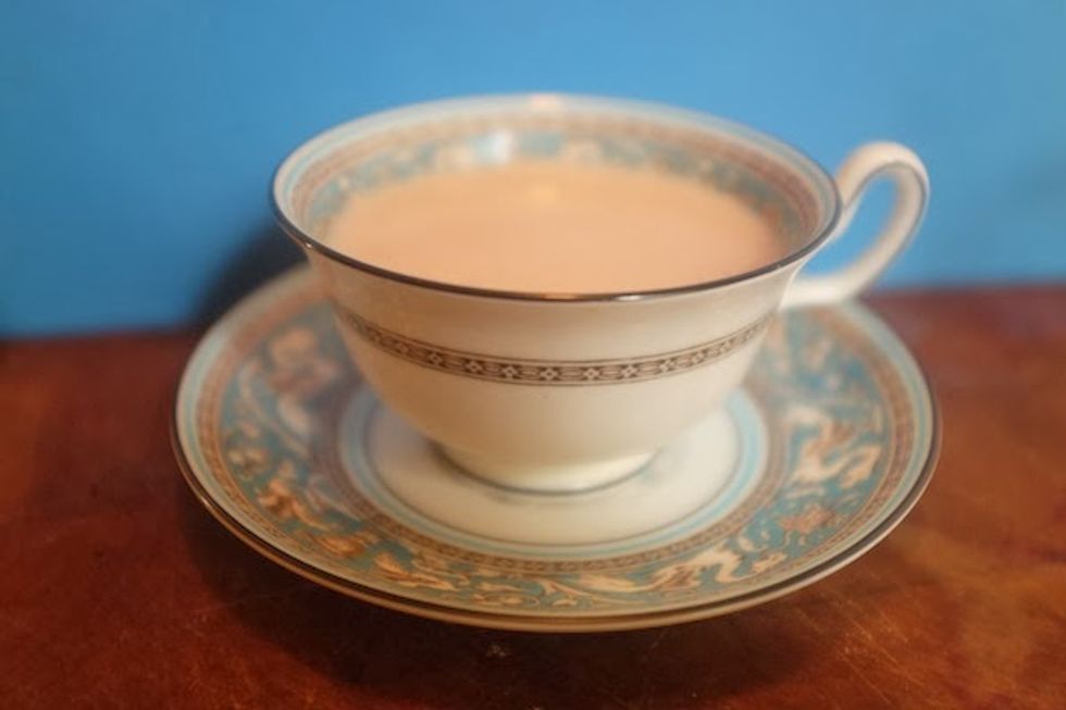 6. Add a tablespoon of honey, a teaspoon of turmeric powder, and a tablespoon of ghee (clarified butter) or coconut oil to the tea cup.