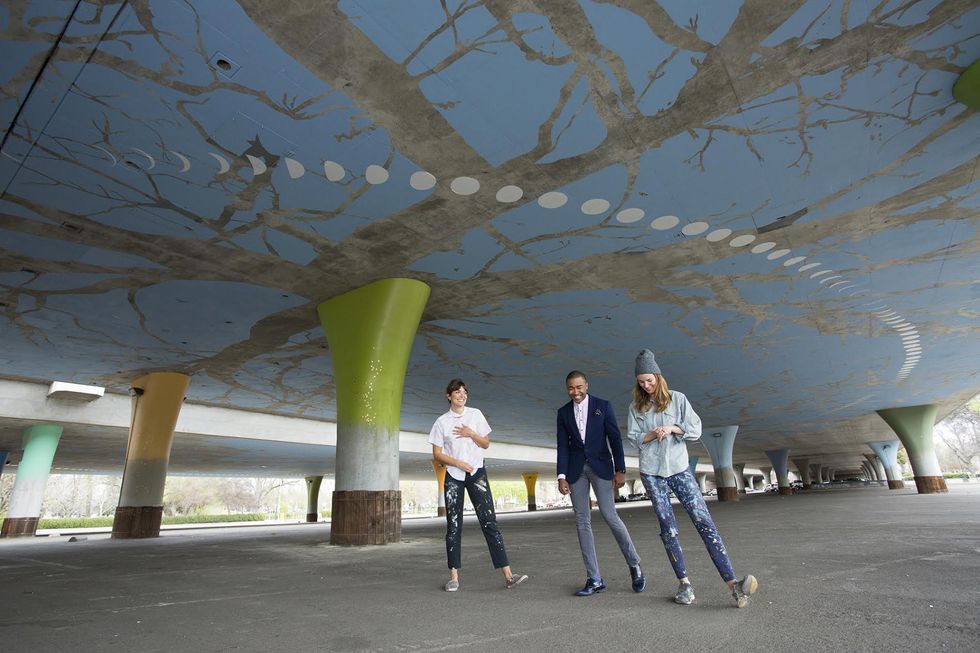 Among Sacramento's most famous murals is Bright Underbelly, which covers the stretch of the Interstate-5 overpass that shelters California's largest farmers' market. The mural depicts a blue sky and the abstract branches and leaves of the sycamore trees that once grew onsite. With the new mural map, Sacramento residents and visitors will be able to find this and other more hidden artistic gems, such as Shaun Burner's new mural on the garage doors of the California Automobile Museum. // Sacramento Mural Map, fusiontables.googleusercontent.com