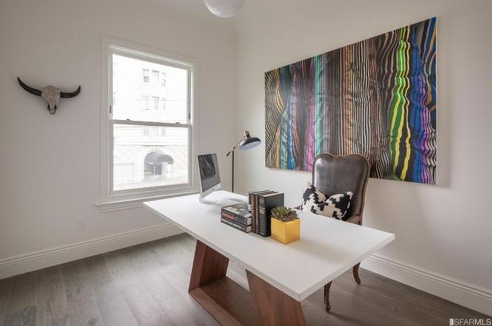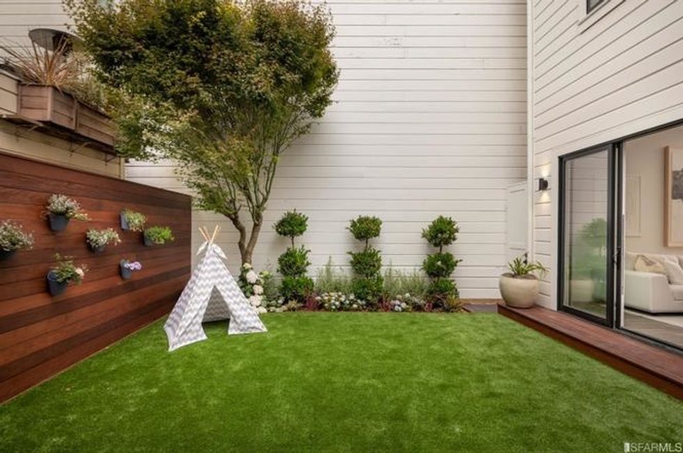 On the third floor, skylights in the arched roof light an open space that's waiting for a vision: A yoga studio or gym, perhaps? Maybe a music room or home theater? If you need fresh air, you could always step through the skylight that doubles as a balcony overlooking the irrigated backyard, teeming with succulent-filled planters, hydrangeas and thyme—the makings of a zen sanctuary.