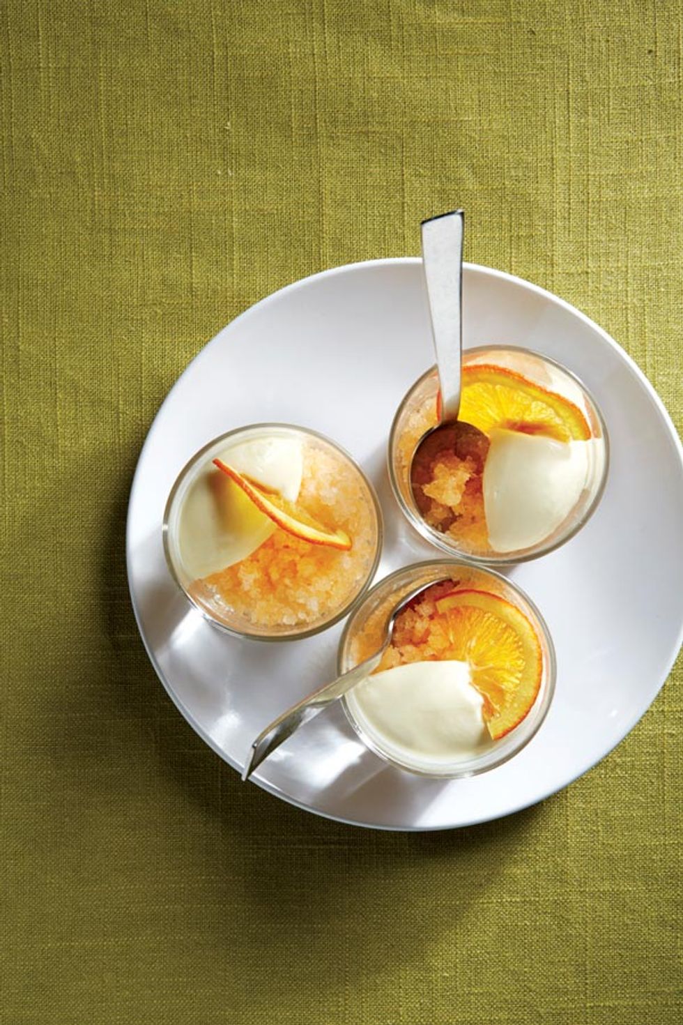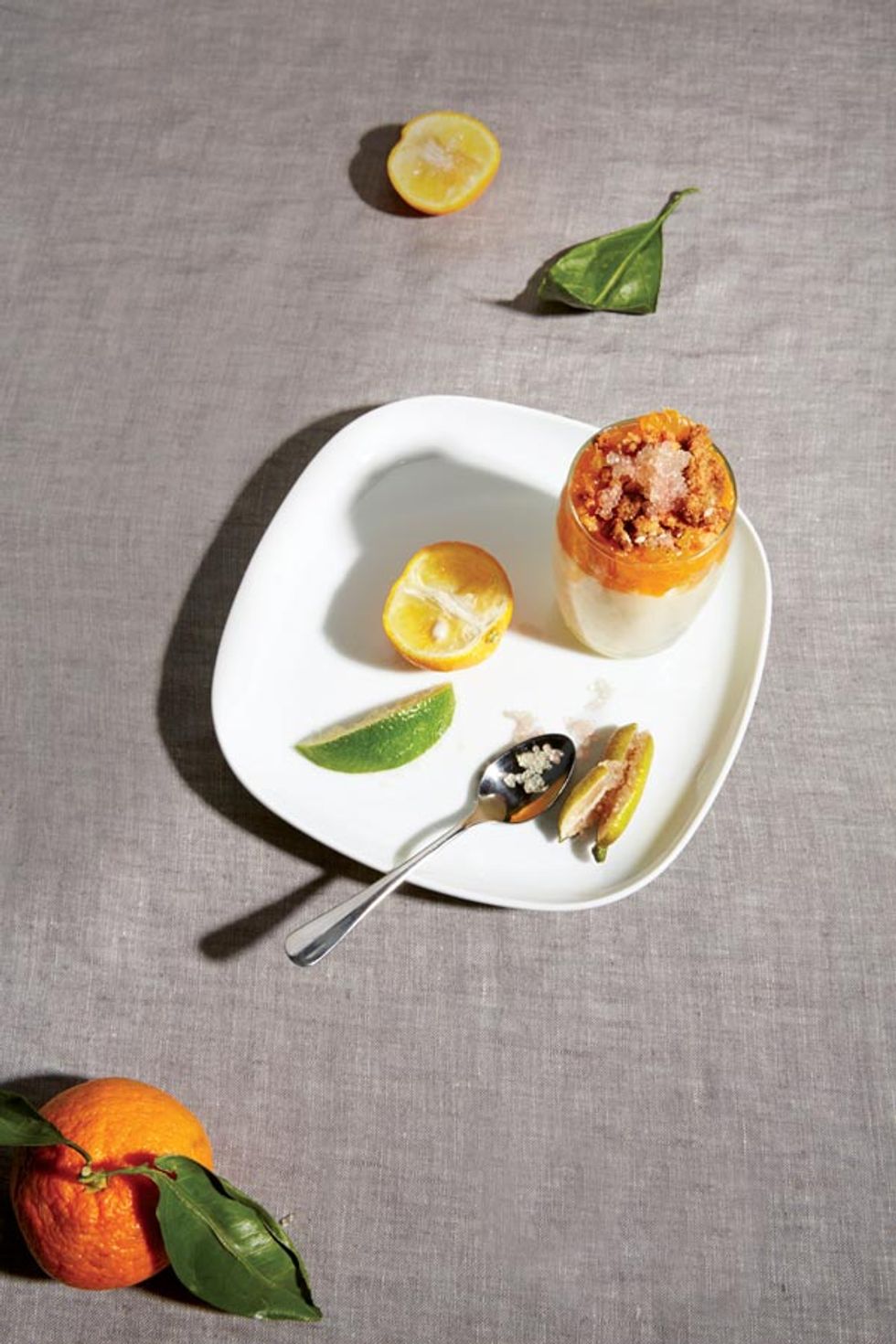 “Tangelos are incredibly acidic, sweet, and perfumed when they’re ripe,” says Americano executive chef Kory Stewart, who incorporates the zippy fruit, sourced through Riverside’s Bernard Ranches, into a refreshing Tangelo Granita, which has an intense orange flavor and aroma that break right through the ice. Served with a dollop of mascarpone cream and a jewel-like slice of candied tangelo, it’s like the classic Creamsicle—all grown up.