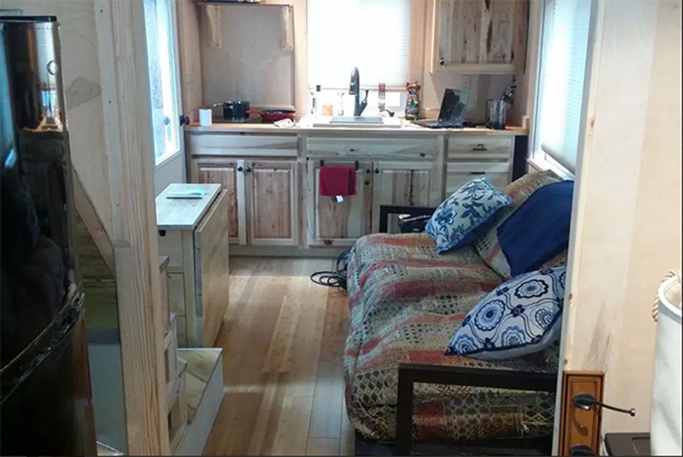 This tiny house in South Lake Tahoe (only a five minute drive from the South Shore) was featured on HGTV's Tiny House Nation. The living area has a futon and a tiny kitchen with wood details, while the sleeping loft includes a queen bed with views of the forest. // $48 per night (South Lake Tahoe), airbnb.com/rooms