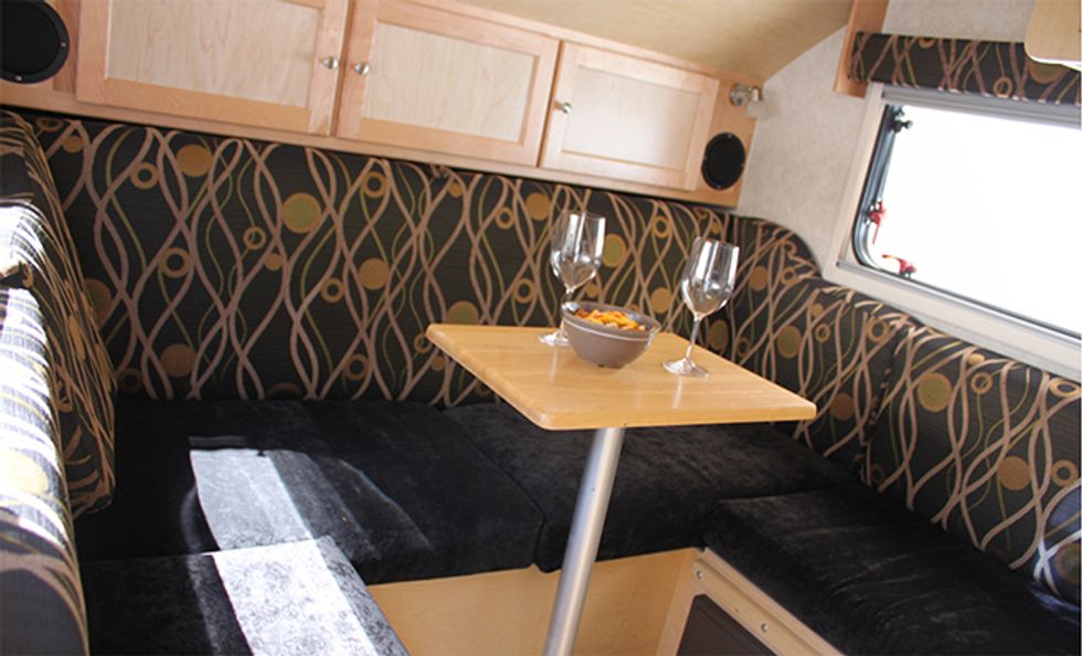If you're on your way to Tahoe (and have the ability to tow), pick up your accommodations on the road! The 1,800-pound TIKI T@B camper from Sierra Teardrops in Auburn has a couch that converts into a queen bed, AC and heat, a refrigerator, sink, and running water. It also has a shower and toilet in a tiny wet bath. The rental includes sheets, towels and cookware. // $100 per night (Auburn), airbnb.com/rooms