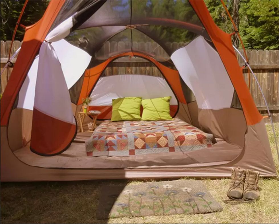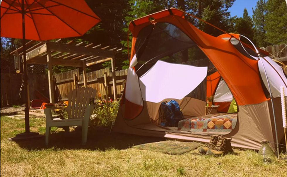 If you want to keep it simple and affordable, this 6-person REI tent someone's backyard could be the ticket. The tent is set up for summer sleeping with an air mattress and linens. Guest have access to the home's kitchen, bathroom, living spaces, washer and dryer and wifi. // $50 per night (South Lake Tahoe)