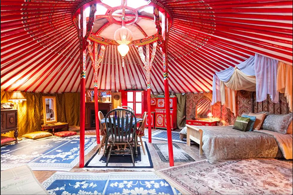 (Above: This Mongolian yurt in Colfax comes with a swimming pool, barbecue and a comfortable bed.)