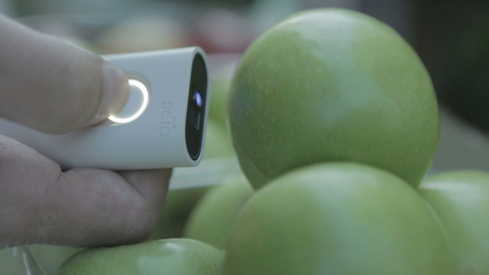 No more counting calories at the table, Scio can discreetly tell you the amount of sugar in a peach, how much fat there is in a salad dressing, or if the extra virgin olive oil you use everyday contains any toxins. The incredible pocket-sized device uses a light source to illuminates the sample food and an optical sensor, called a spectrometer, to collect the light reflected from the sample. The spectrometer then breaks down the light into a spectrum, which includes all the information required to detect chemicals in your food. Crazy, right? // consumerphysics.com/myscio