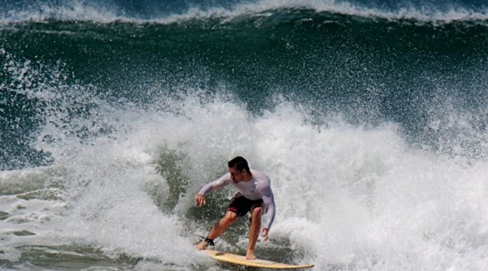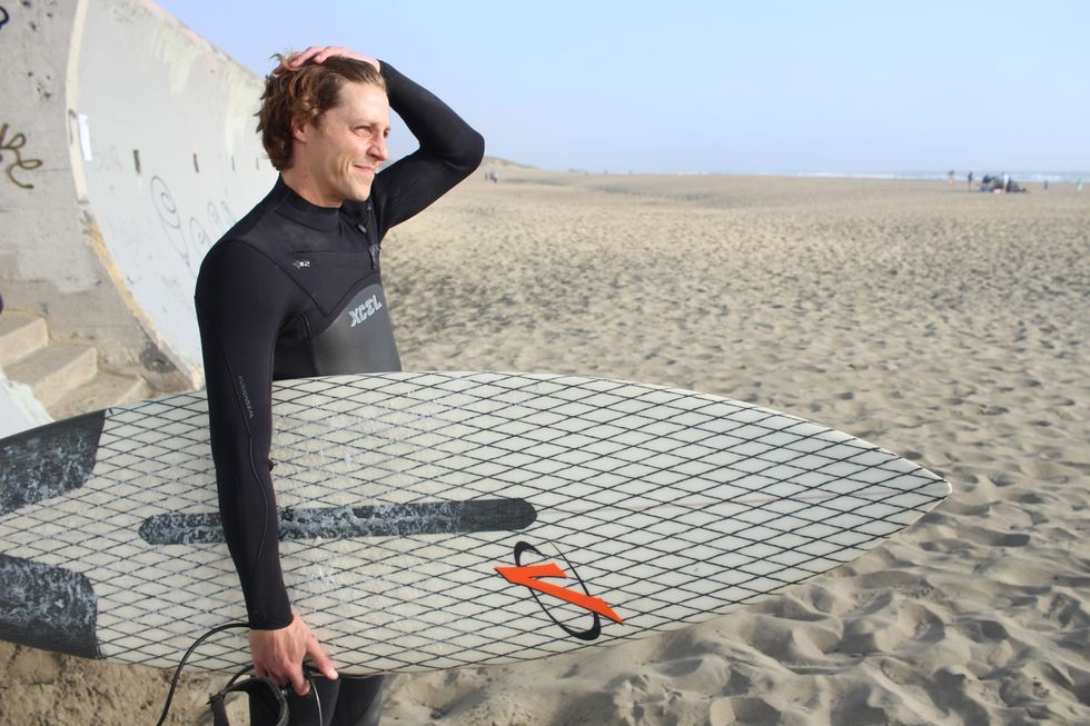 At 6:30 in the morning, Britt Packouz is boisterous. The ominous fog hanging above the western end of the city, broken up by just slivers of filtered sunlight, doesn't deter him from zipping up his wetsuit and jumping into the water. On this particular day, he notices the waves aren't as good as they usually are.