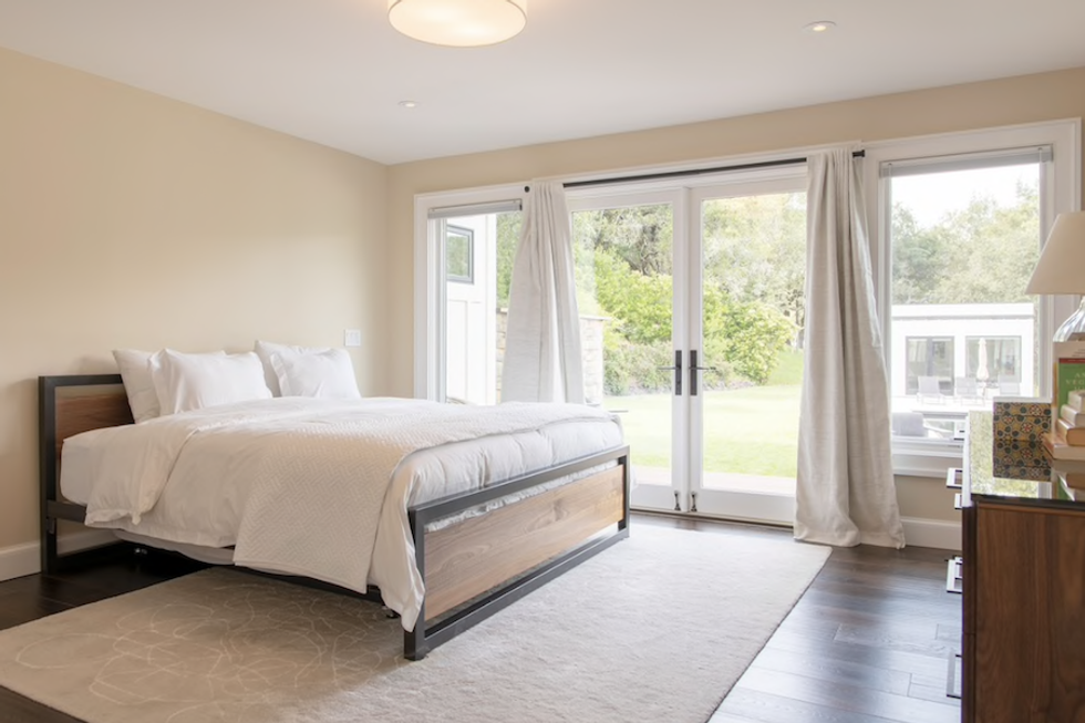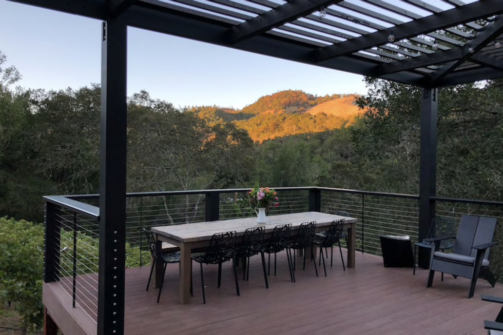 You could easily ride your bike from this hideout to Sonoma Square, but you may have a hard time tearing yourself away from the infinity pool with vineyard panoramas. This four-bedroom stay is the epitome of lavish, Wine Country living with an open floor plan and guest house deal for entertaining thanks to endless patios, dining spots, and a retractable living room for indoor-outdoor living. The five-acre property doubles as a working vineyard for Barboshi Farms, giving guests the opportunity to participate in the winemaking process. // Book your stay at airbnb.com.