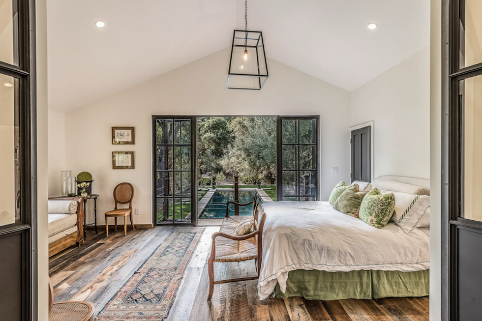 Flanked by a swimming pool on one end and a hot tub on the other, this shabby-chic Napa Valley farmhouse has an open layout, two airy bedrooms each with French doors, and mountain and vineyard views. The magazine-worthy interiors are impeccably designed—think zebra print accents and antique European furnishings—and amenities include a wine fridge and an acre of secluded grounds. // Book your stay at luxuryretreats.com.