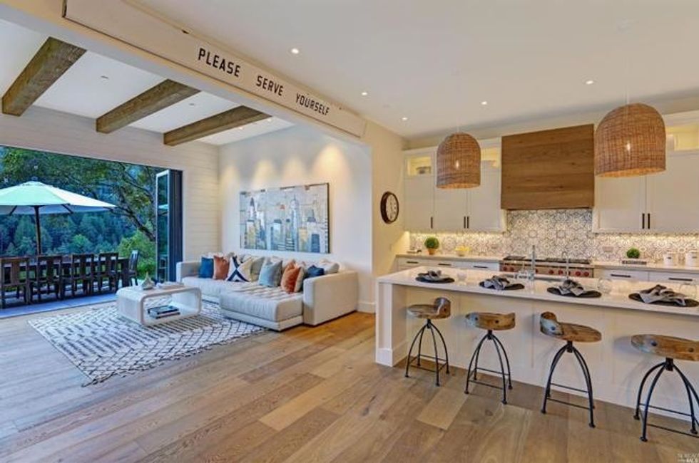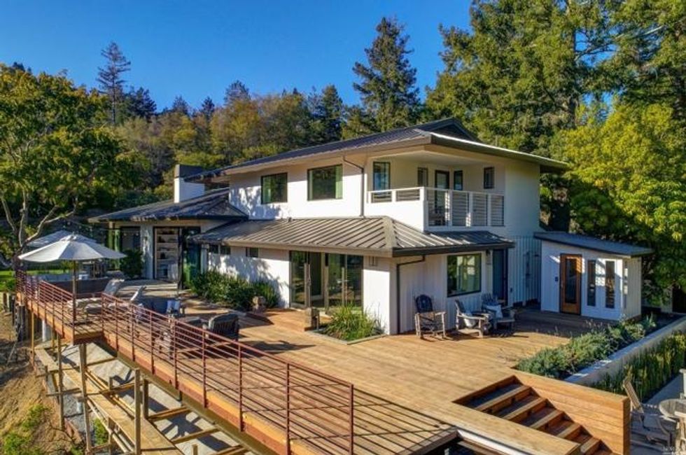 More like a resort than any home we've ever lived in, this 3,550-square-foot Marin house feels quintessentially Californian—situated on one acre and hugged by views of the county's famous redwoods, the four-bedroom home with sweeping walls of windows is the epitome of indoor-outdoor living.