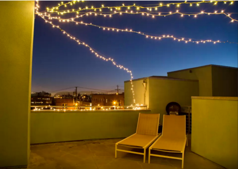 Starry nights and strings of lights await at this contemporary two-bedroom loft, complete with a fully stocked bar, an Xbox, and a small roof deck (views of the Bay Bridge!) in the Dogpatch. This place is pet-friendly, so if you're allergic, this may not be the place for you. // $320/night (entire house), airbnb.com/rooms/2414140