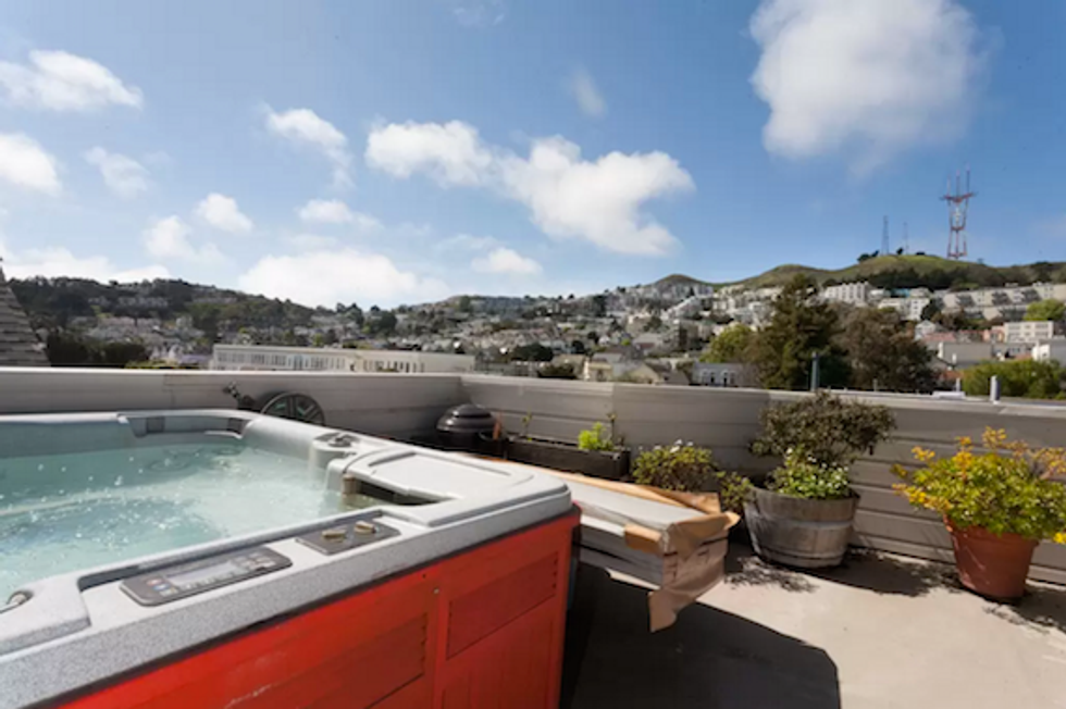 Because all perfect sunny days in the Castro should end with a night spent in your own hot tub, this private room in Mark and Abby's house might be worth sharing the space with dogs and the bathrooms with other Airbnb guests. Maybe? // $110/night (private room), airbnb.com/rooms/283081