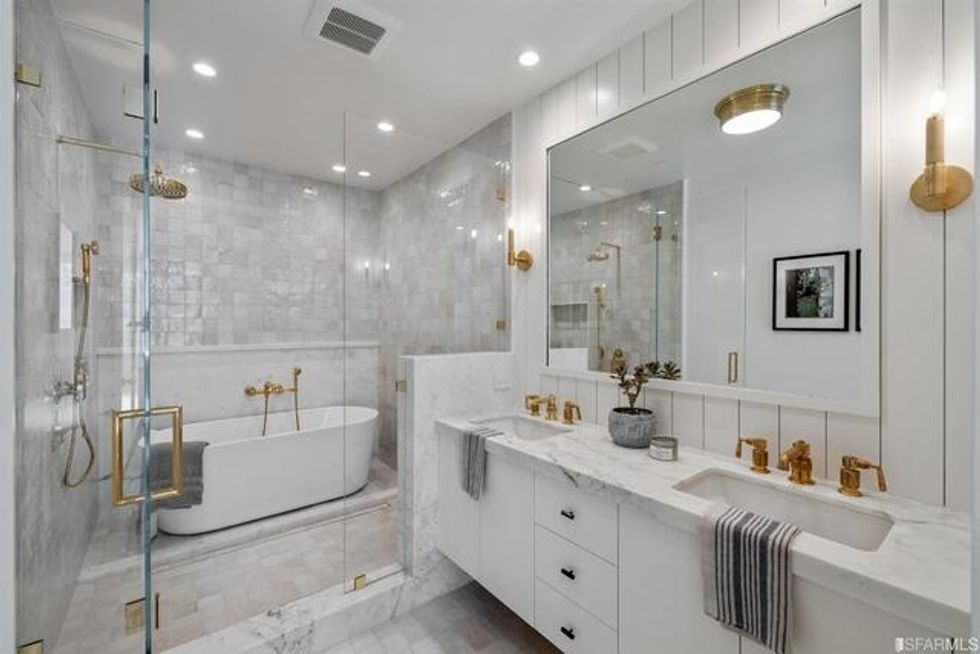 Taken down to the studs, the Russian Hill house was given a full makeover with trendy contemporary farmhouse appeal—a bit like Diane Keaton's "The House That Pinterest Built," only minus the rusty touches. It has a versatile floor plan that allows for multiple configurations, whether you're looking for a spacious single family residence—the whole property clocks in at 6,000 square feet—or an adjacent rental dwelling.