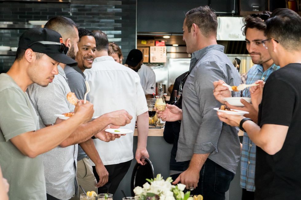 Night Three capped the series with a bang, as a particularly party-loving set of chefs dished everything from spicy pork cracklins to traditional eggplant parmigiana. The night was summery and the Bulleit cocktails flowed—even back into the kitchen. The evening's tastebuds were tickled by the chefs from Shakewell, Wood Tavern, Kingston 11, Hog's Apothecary, LoCoco's, and Donut Savant.