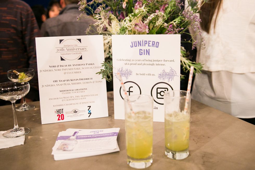 On October 26th, in Anchor Distillery's Penthouse Tasting Room, 7x7 and VIP guests raised a glass to this year's crop of talents. San Francisco's leading bartenders, Kevin Diedrich of Pacific Cocktail Haven and Anthony Parks of Mourad, served up Junípero Gin specialty cocktails in celebration of its 20-year anniversary in San Francisco. Delicious bites, think peppered short rib pastrami and smoked winter squash, were prepared by Melons Catering & Events.