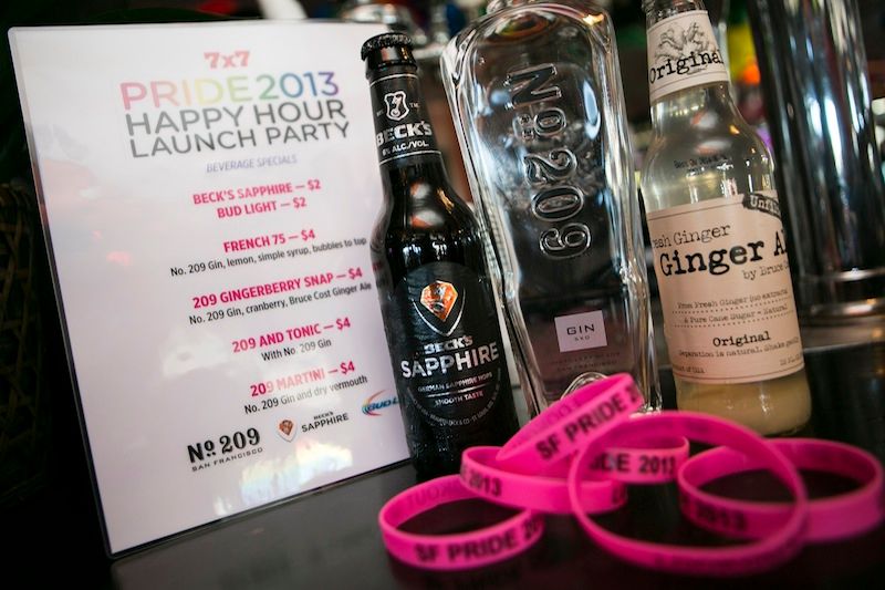 7x7 Pride 2013 Happy Hour at Lookout: featured drinks included No. 209 Gin cocktails, Beck's Sapphire, and Bud Light