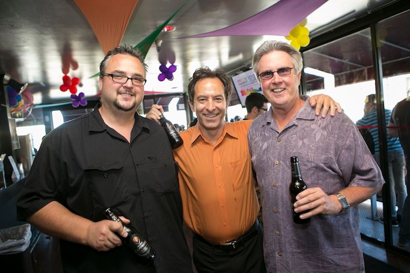 7x7 Pride 2013 Happy Hour at Lookout: 7x7's Adam Shandobil with David Gordon and Dick Unsinn of Beck's and Bud Light