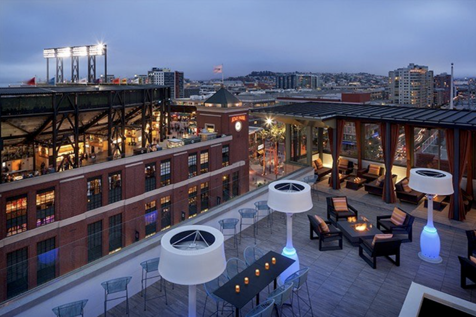 Stop by the Rooftop at Via for cocktails and views of Oracle Park.