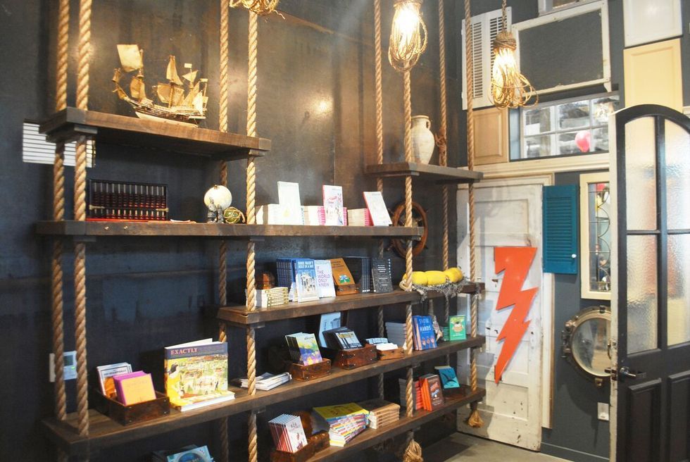 Inside the new space, two grownup-sized doors and two hidden passageways for kids lead to the spacious tutoring center, which also features secret passageways to a treehouse perched high over the room. While the storefront, King Carl's Emporium (named after the original pirate store's puffer fish) will sell supplies for explorers and student written publications.