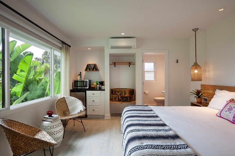 From the outside, the Blue Sands Inn doesn't look like much—a small motel with a rectangular pool. But inside, this renovated boutique motor-lodge has captured a flawless beachy-cool vibe. Rooms are decorated with hanging basket-woven lampshades, patterned textiles, and bright paintings from rotating local artists. Most of the inn's 12 rooms also have gas fireplaces, kitchens, and private patios. Best of all, you're just steps from Santa Barbara's beloved East Beach where you can relax or ride for miles on one of the Inn's rentable bikes. Rooms start at $209/night. // 421 S. Milpas St (Santa Barbara), bluesandsinn.com