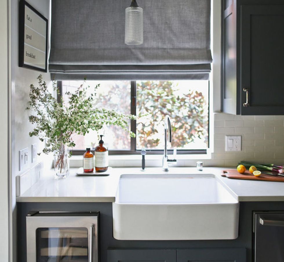 In this room space is at a premium, but that doesn't mean Kwong had to sacrifice amenities. She made room for elements such as a wine refrigerator and a farmhouse sink by choosing the slimmest models of appliances she could find. "I decided on what was most important to me, such as a big farmhouse sink, and included it," Kwong says. "After that it was a game of inches."