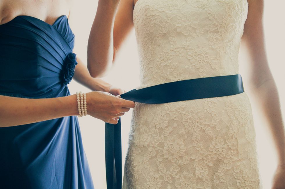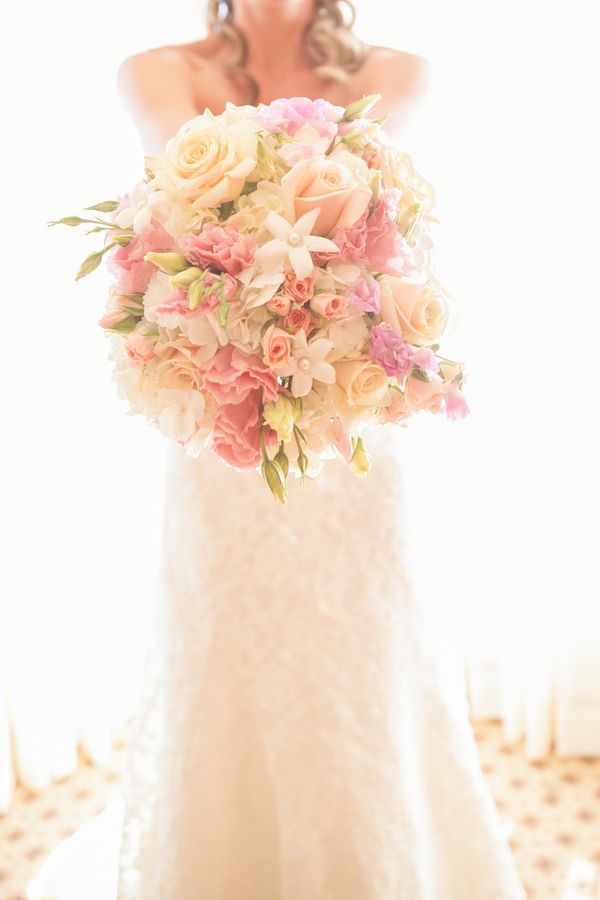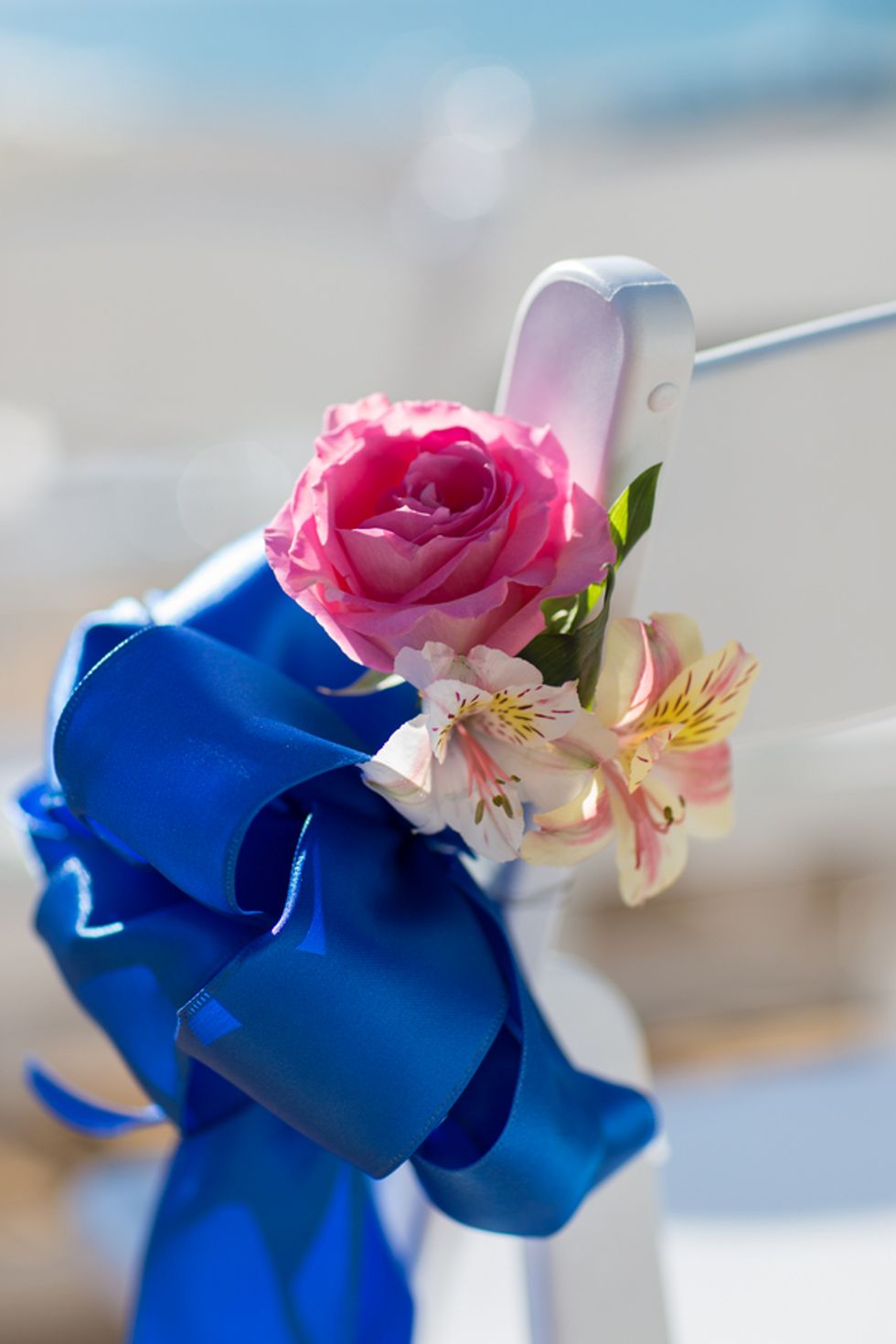 Loni wore a beautiful Lian Carlo dress with detailed lace and a thick blue ribbon around the waist. So chic! Her make up was done perfectly natural for a summer wedding on the sand by the talented Annie Miller from Benefit Cosmetics.