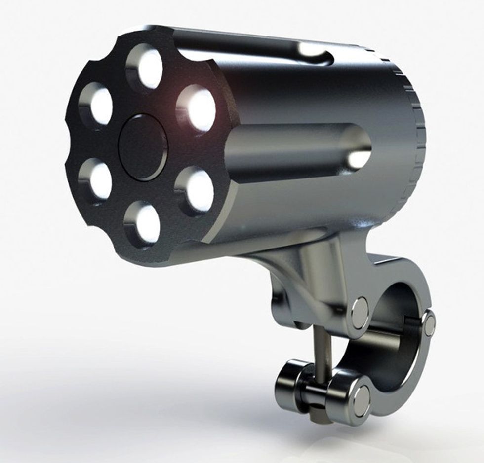 And it’s made to look like a gun, which I guess is intimidating. I have a hard time envisioning a gun-shaped light on my vintage Italian frame bike, but if it means that I don’t have to take off the lights every time I pop into a store, then I’m game. Plus, never buying a new set of lights sounds pretty nice.