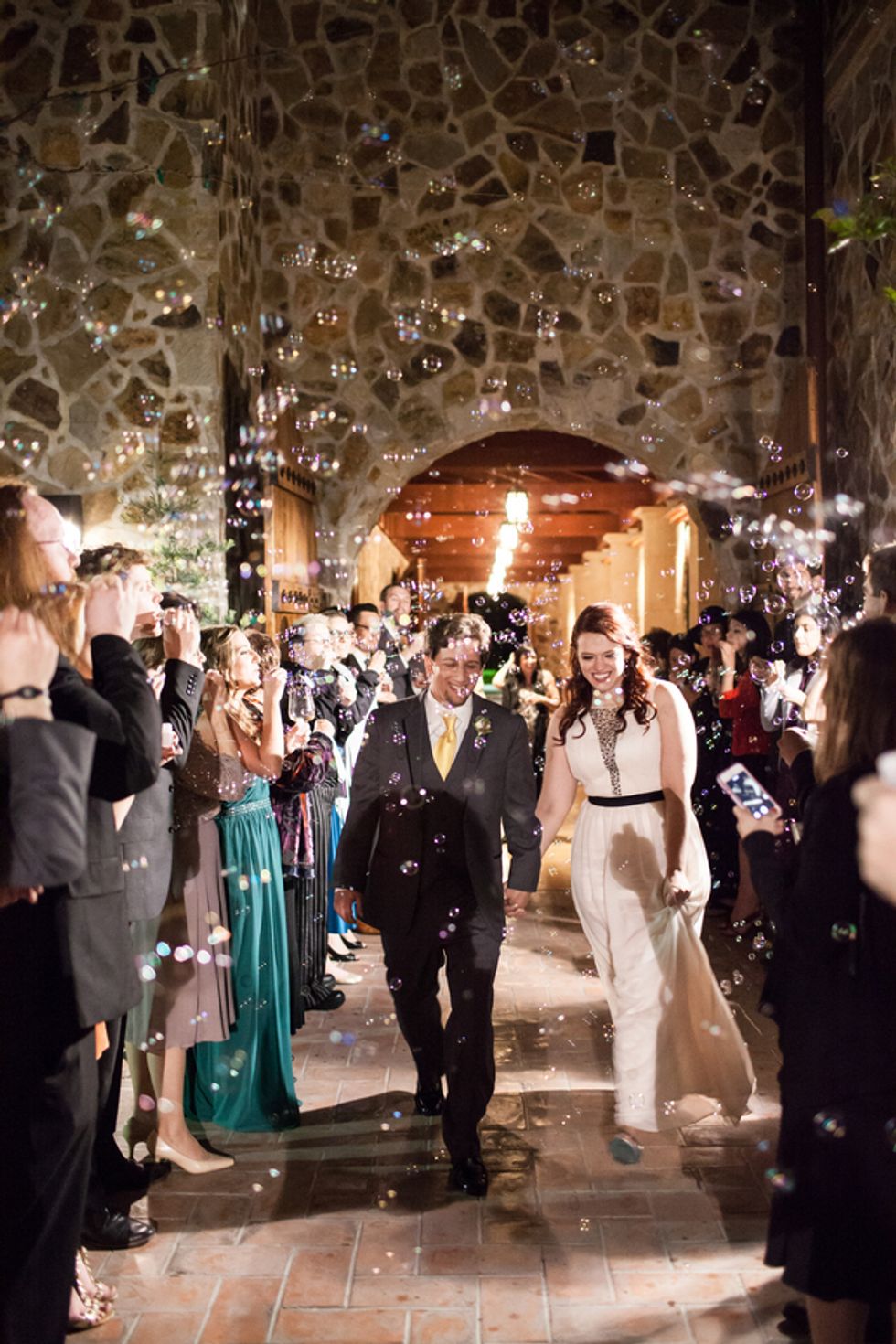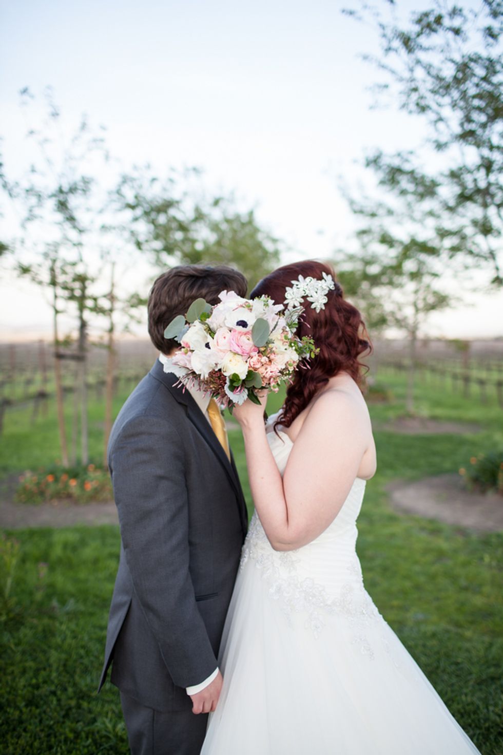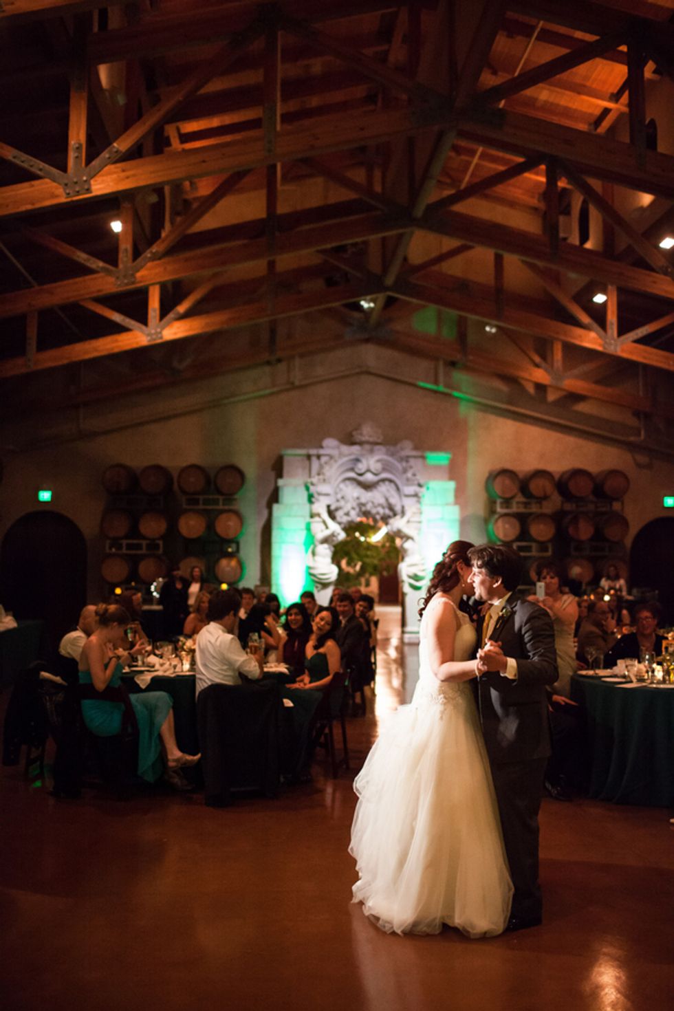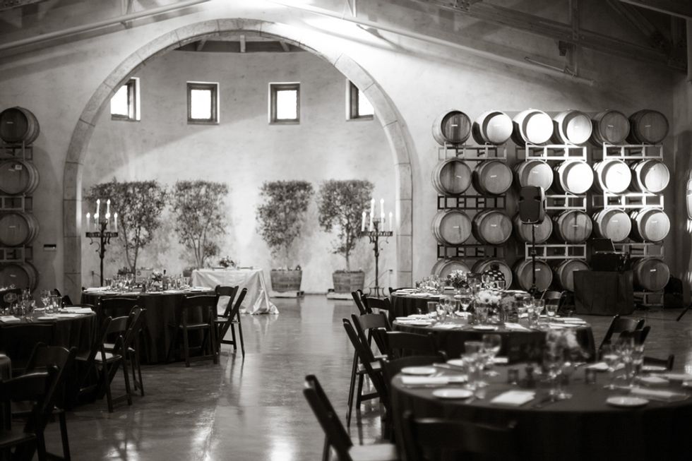 The duo's nuptials reflected their worldly pursuits—delicious and diverse cuisine choices, including cucumber-infused egg benedict and truffle fries, evoked the French spirit of their engagement. The Jacuzzi Vineyards, which are full of frescoes, fountains, and other European touches, was an ideal locale for the globetrotting pair.