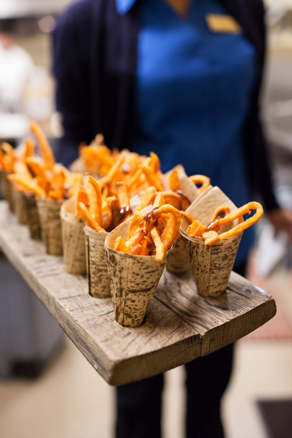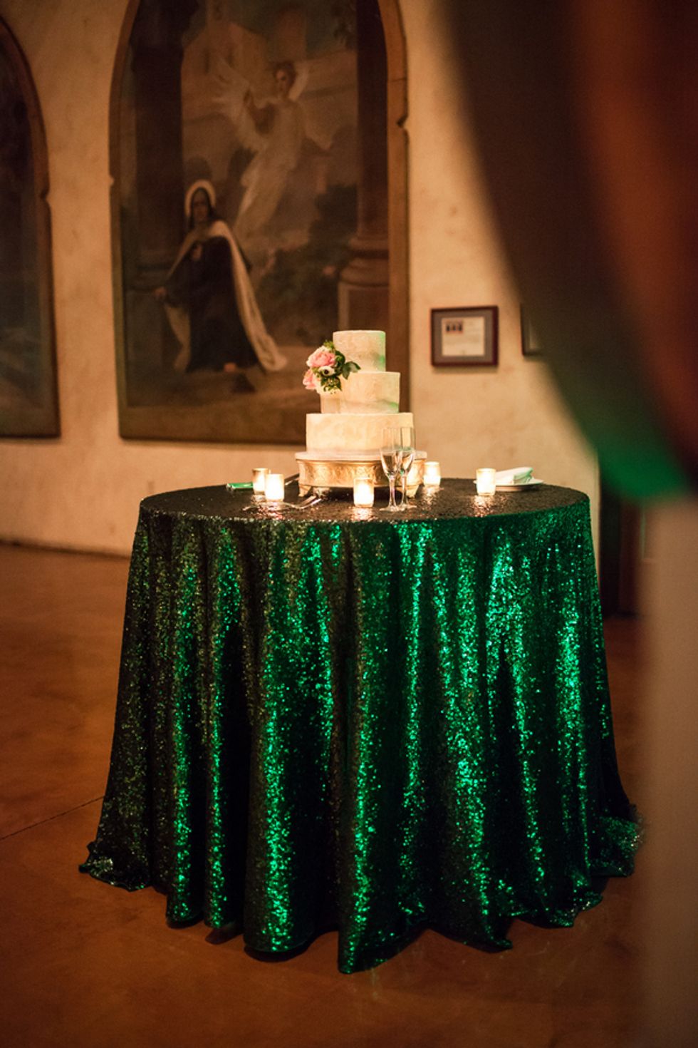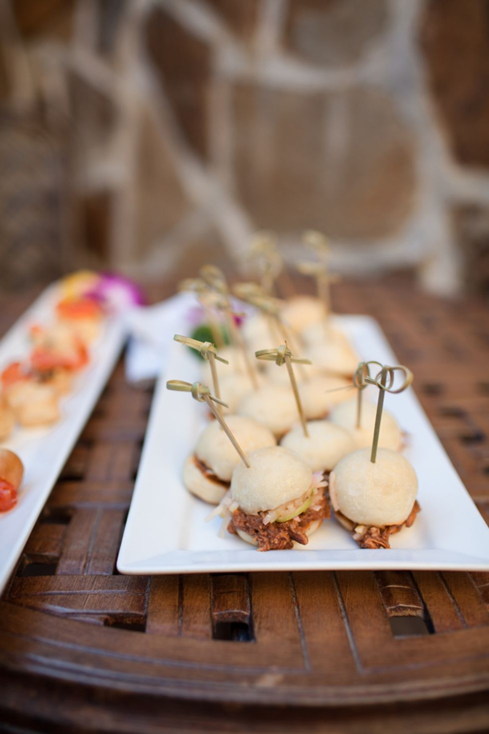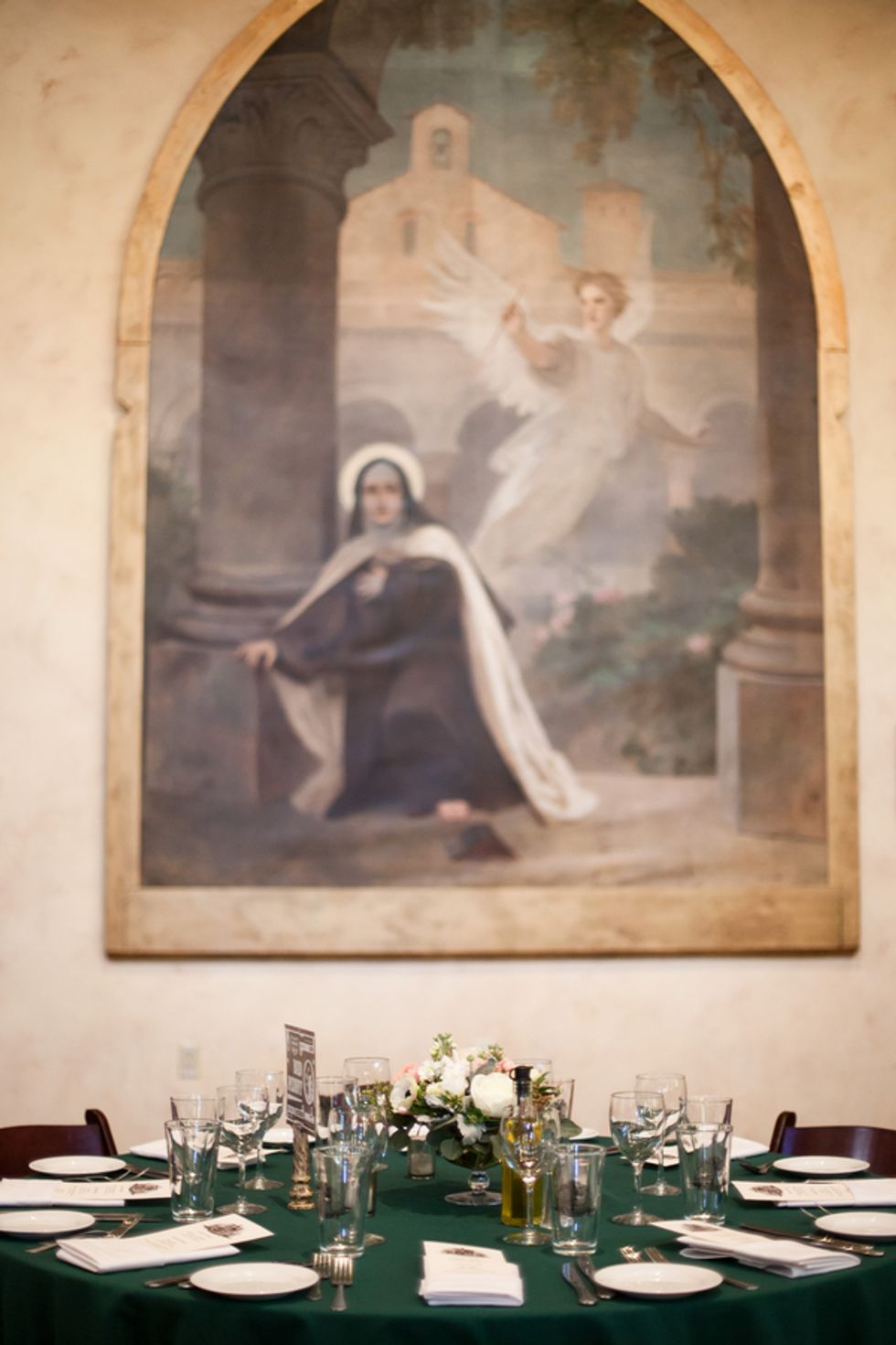 The duo's nuptials reflected their worldly pursuits—delicious and diverse cuisine choices, including cucumber-infused egg benedict and truffle fries, evoked the French spirit of their engagement. The Jacuzzi Vineyards, which are full of frescoes, fountains, and other European touches, was an ideal locale for the globetrotting pair.