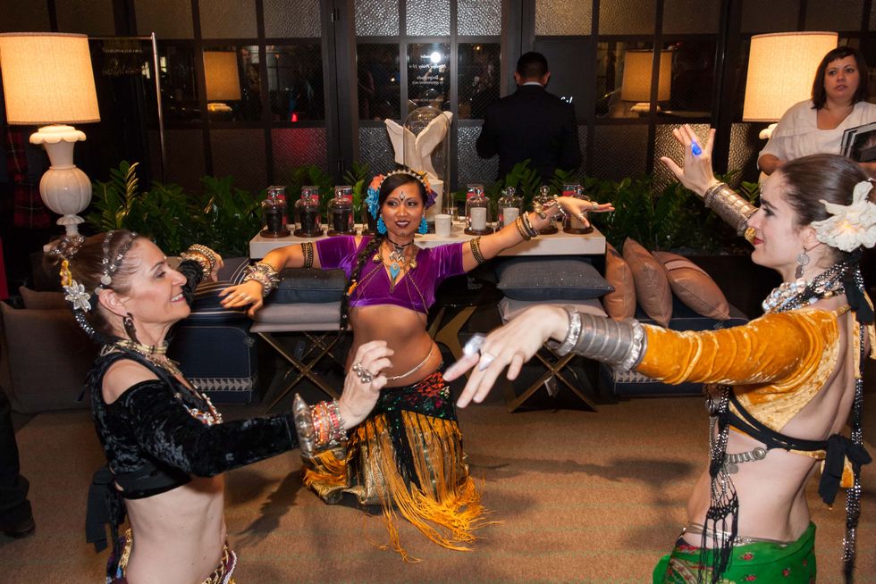 Surrounded by a harem of belly dancers, glittering ladies, and men of velvet and furs, you'd be forgiven should you mistake the woman with hennaed hands and jeweled hair as some mysterious monarch from the other side of the planet.