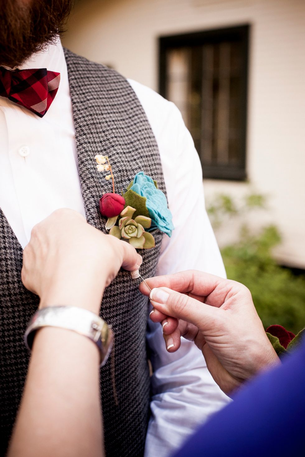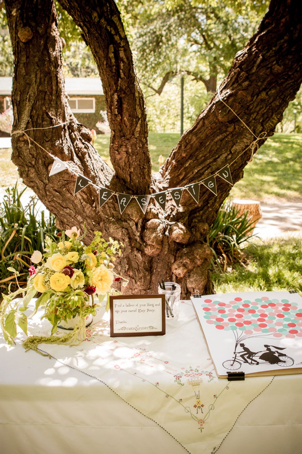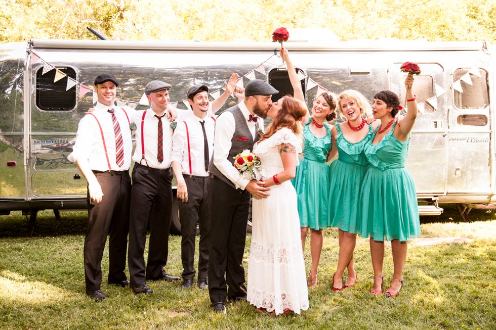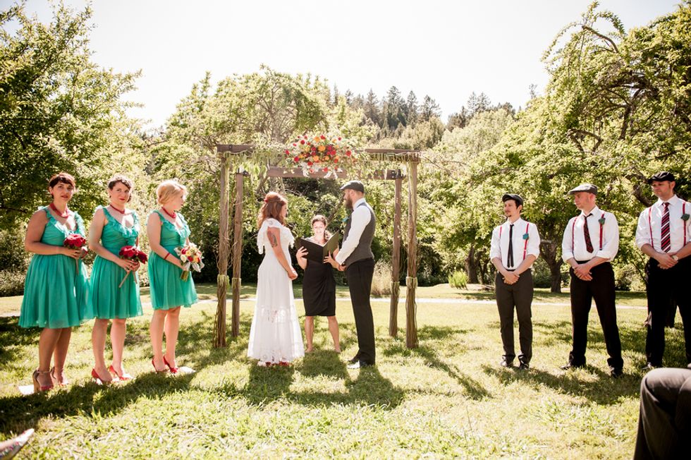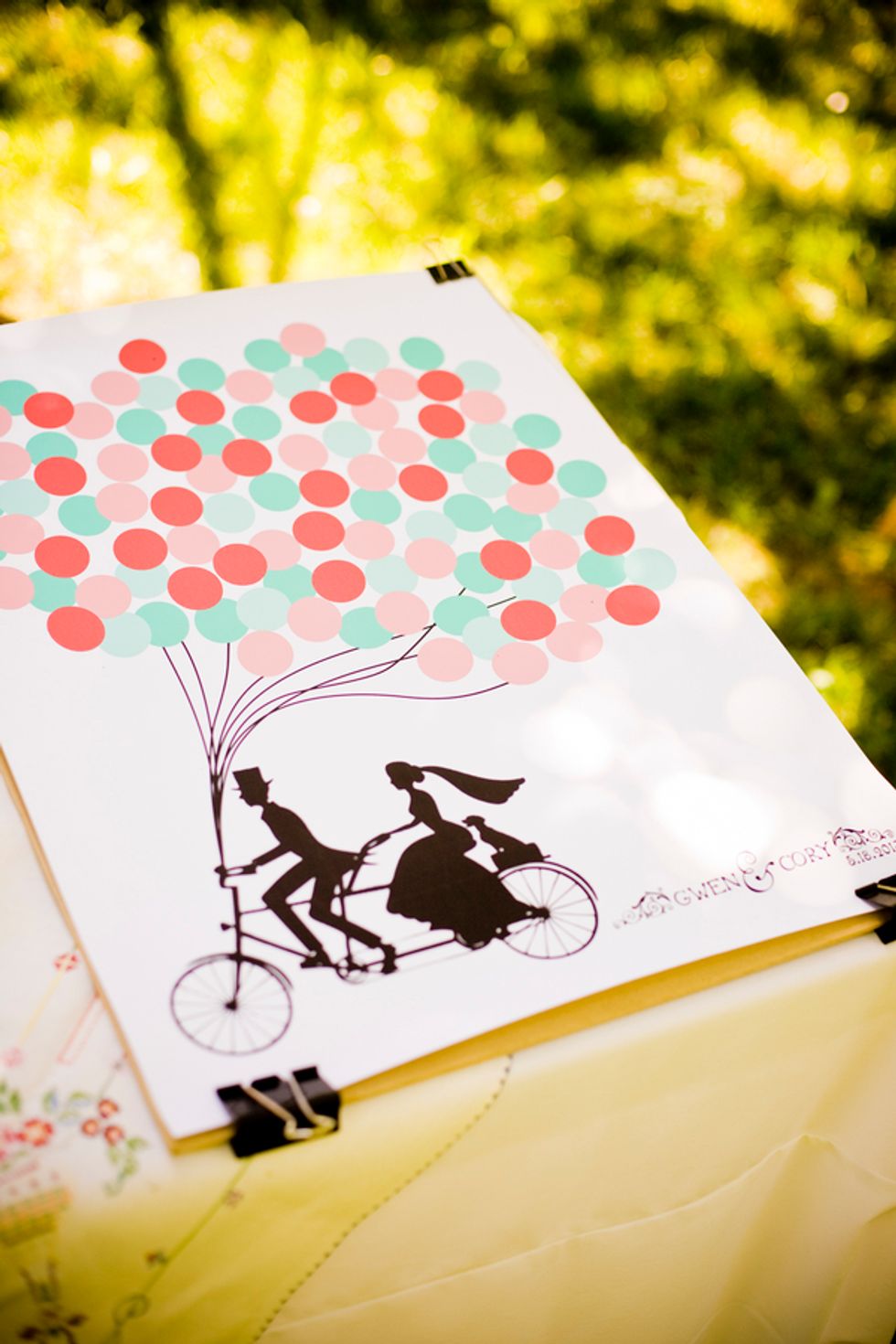 Bikes were also incorporated into their special day, since Cory proposed to Gwen at the finish of an epic ride from San Francisco to LA. After vows were exchanged, they rode off together on a tandem with Mr. Peanut in the front basket.