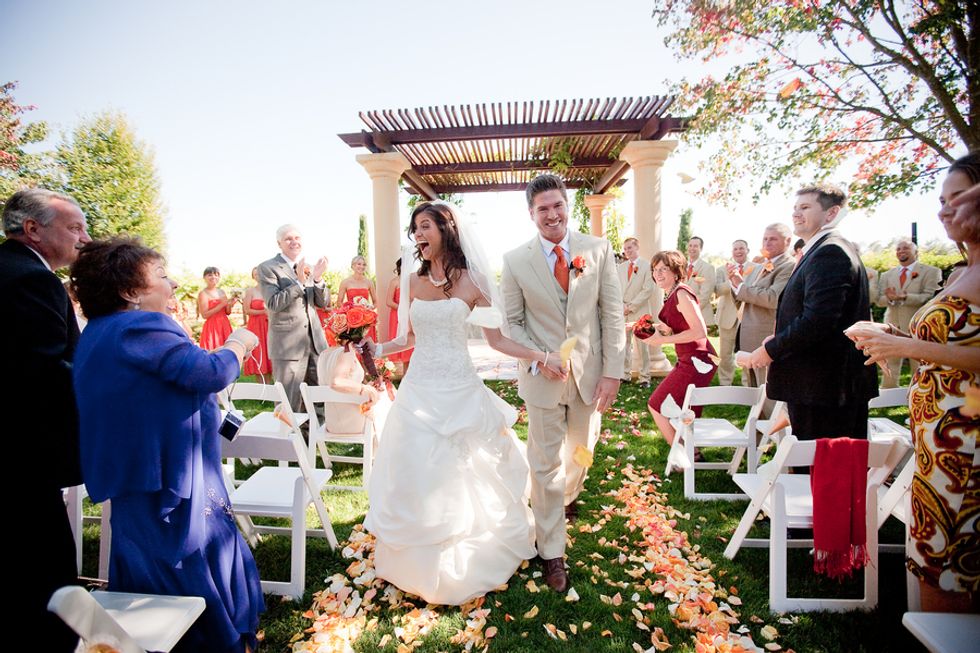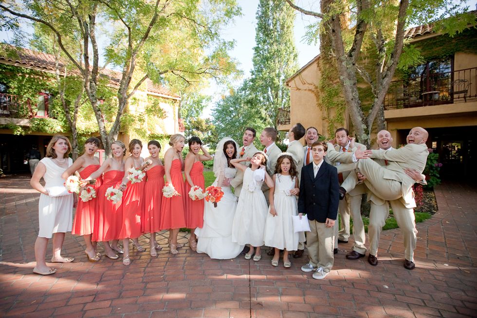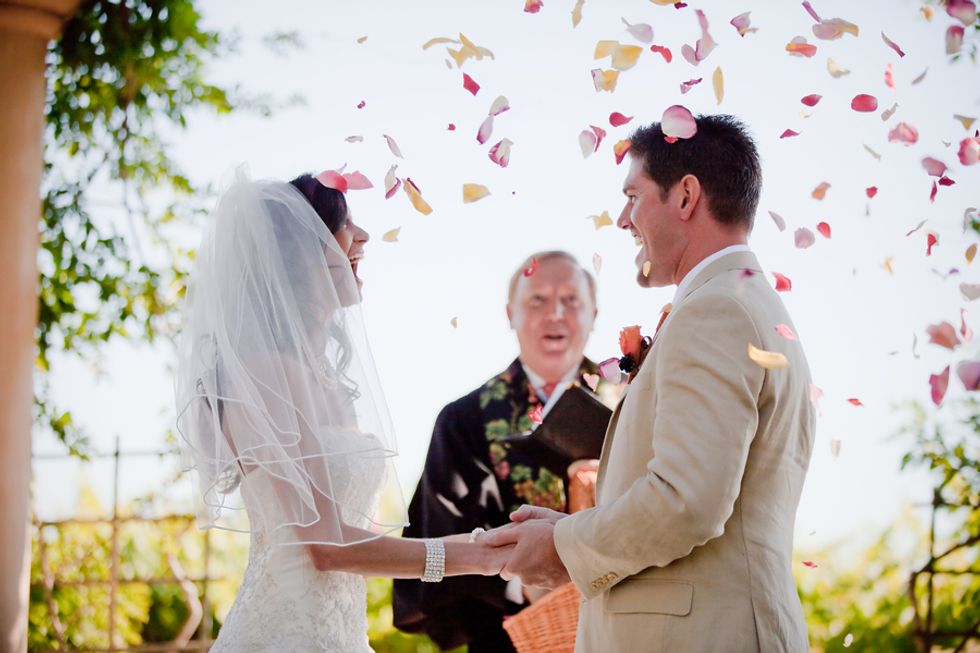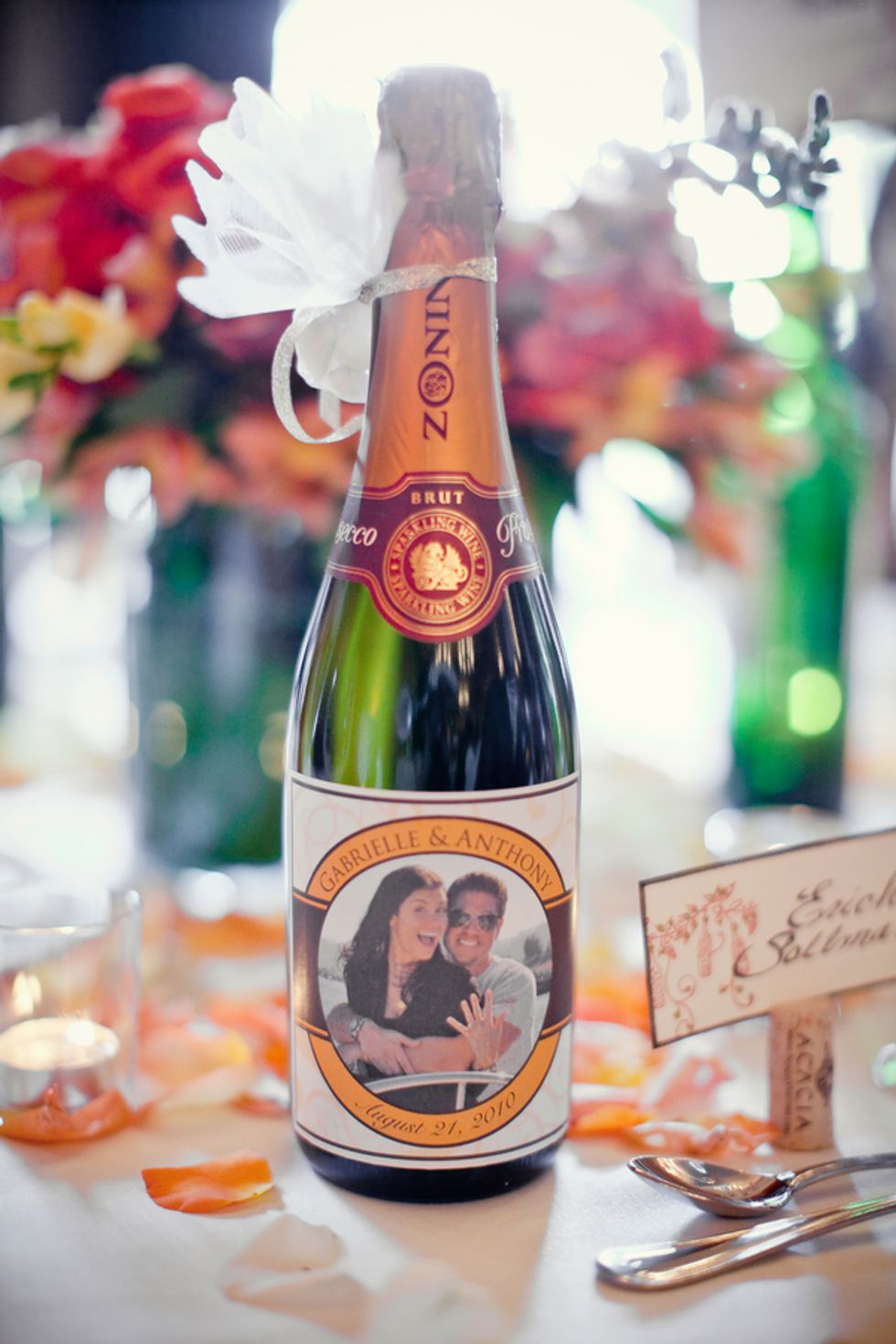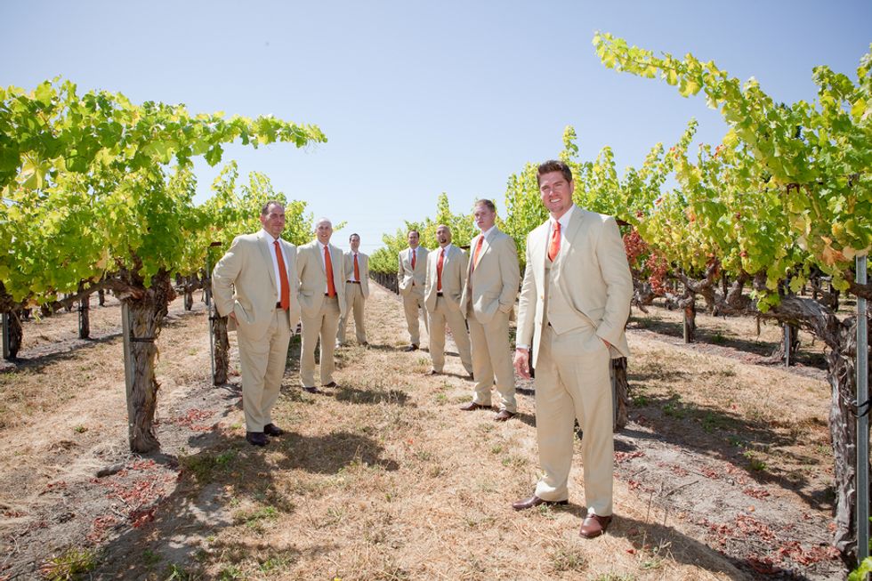On the day of their wedding, surrounded by family and friends, Gabrielle & Anthony married with the vineyards as a backdrop. Vibrant coral & orange hues in the florals and bridesmaid's dresses popped against the beautiful summer greens, and the men's linen suits kept the formals approachable and fun. Gabrielle & Anthony created a custom label for each table's champagne bottle, and treated their guests to delicious Napa-style meal.