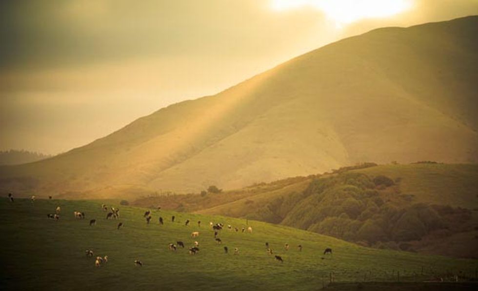 It is hard to imagine a better place to be a cow this time of year than in the thick, knee-high rye grass that blankets the hills east of Tomales Bay. Here, cows graze and lounge around on the lush, green shag, returning to the dairy twice a day for milking. “To us, that’s cheese,” says Kuba Hemmerling, head cheesemaker at Point Reyes Farmstead Cheese Company, which churns out the only classic style blue cheese made in California.
