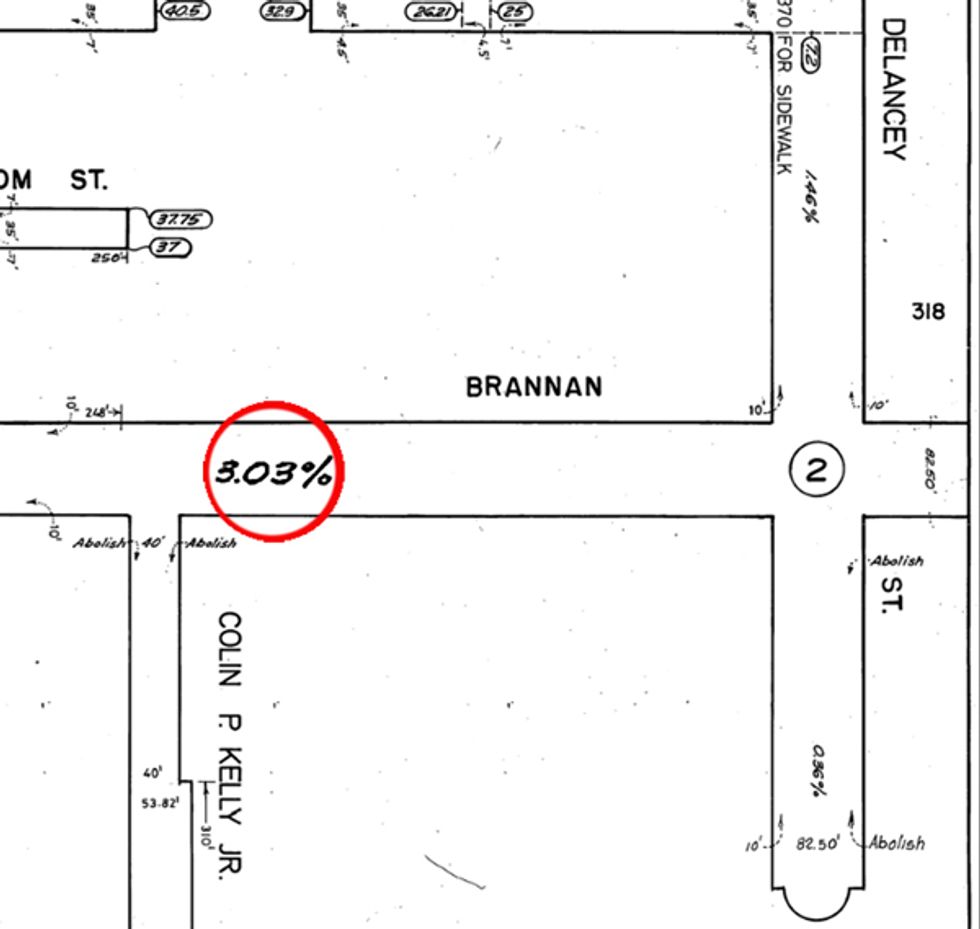 I quickly found your information about the survey grades from SFDPW, and the map for it. Here is what I am wondering: The law says that it is a violation if wheels are not parked on greater than a 3% grade. The grade of my street according to SFDPW is 3.03%, technically greater than the threshold but by such an insignificant amount as to make little to no difference.