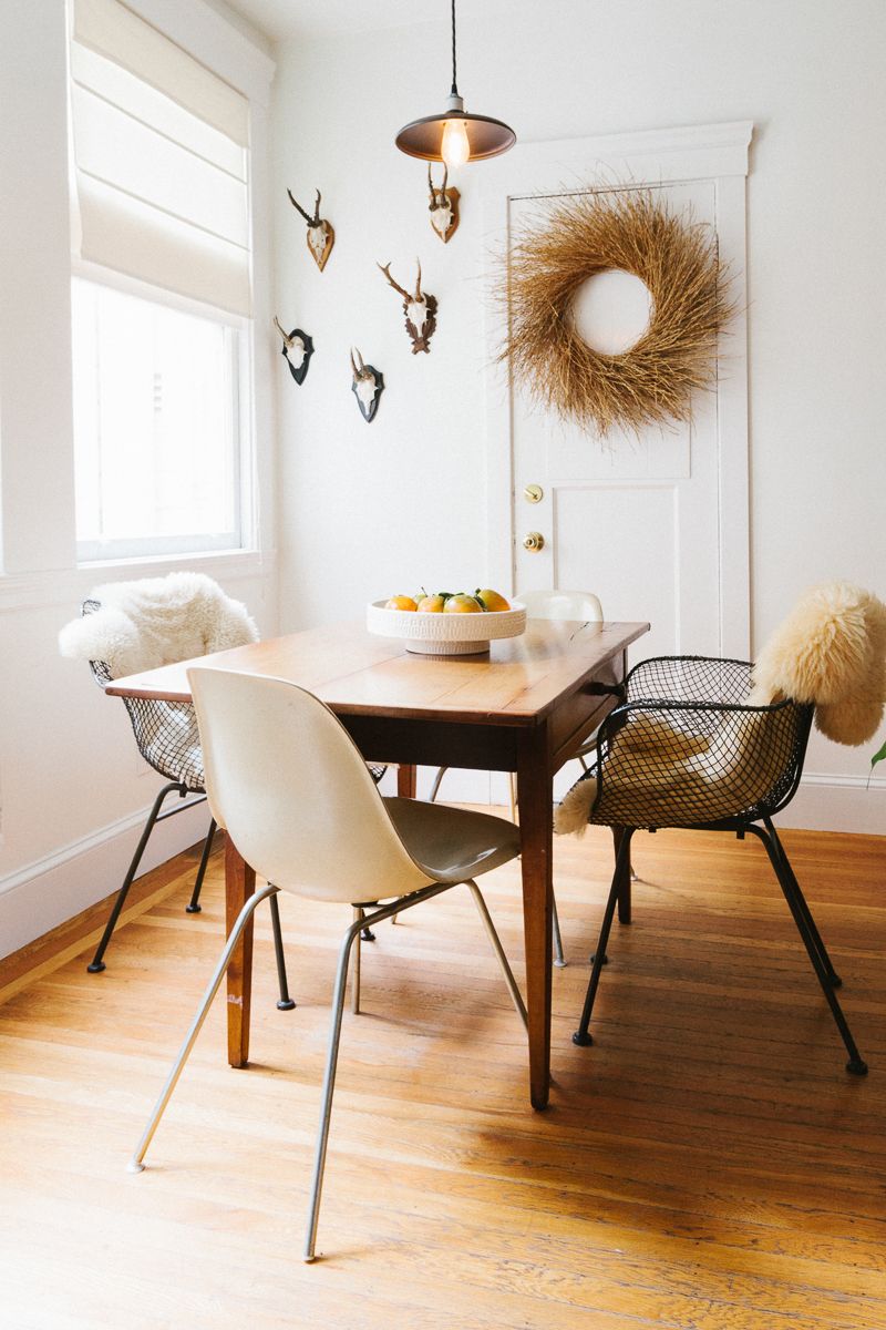 Two pairs of vintage chairs make the dining space eclectic yet cohesive. / Photos by Lauren Edith Andersen.