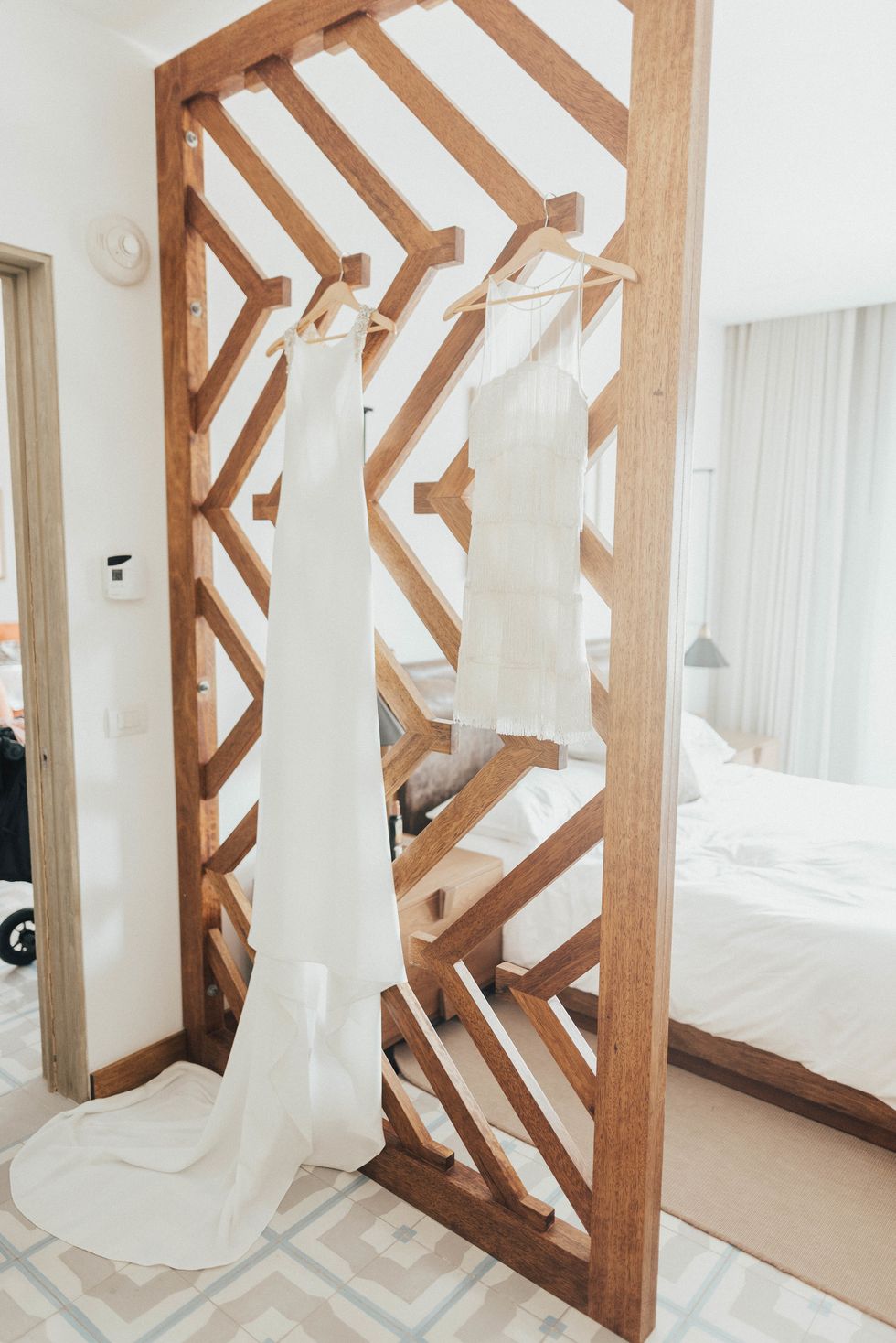 On the day of, there was nothing but excitement, including a quick mishap. At one point, water spilled onto their ceremony site when a guest overflowed the plunge pool. Luckily, it was cleaned up without the bride and groom even taking notice. Accidents aside, the wedding went off with just one hitch (of the matrimonial sort). The couple wrote their own vows, had an epic dance party at the reception and followed it with a bash at Montalbo's parents' villa, where she admits, there was a lot of tequila flowing.