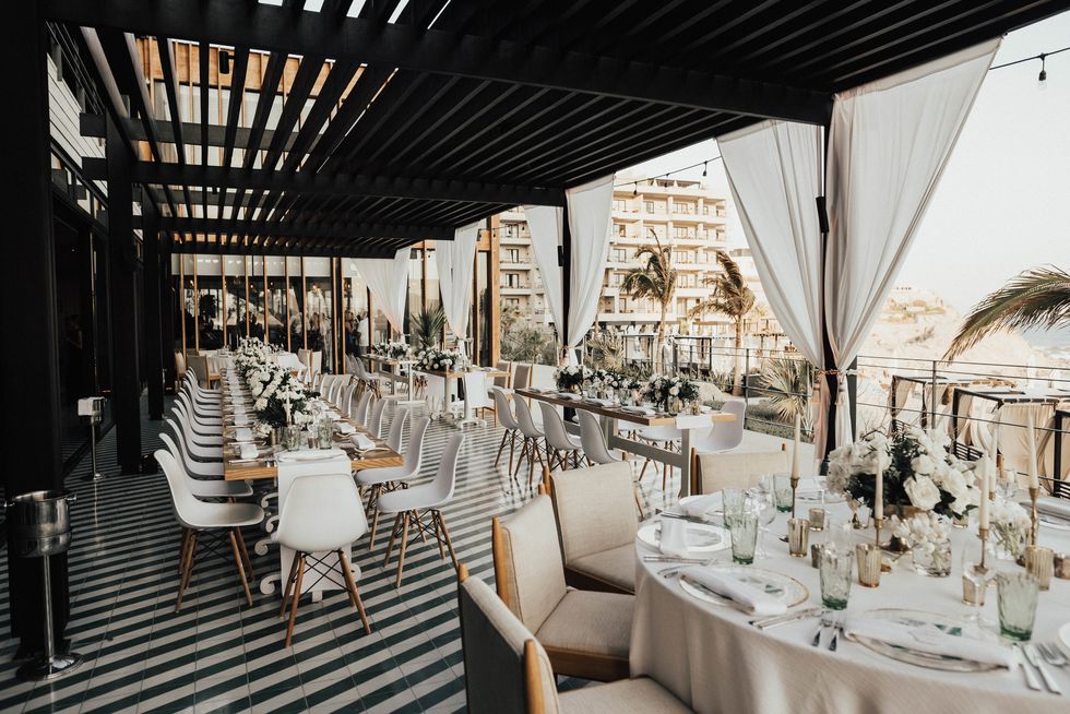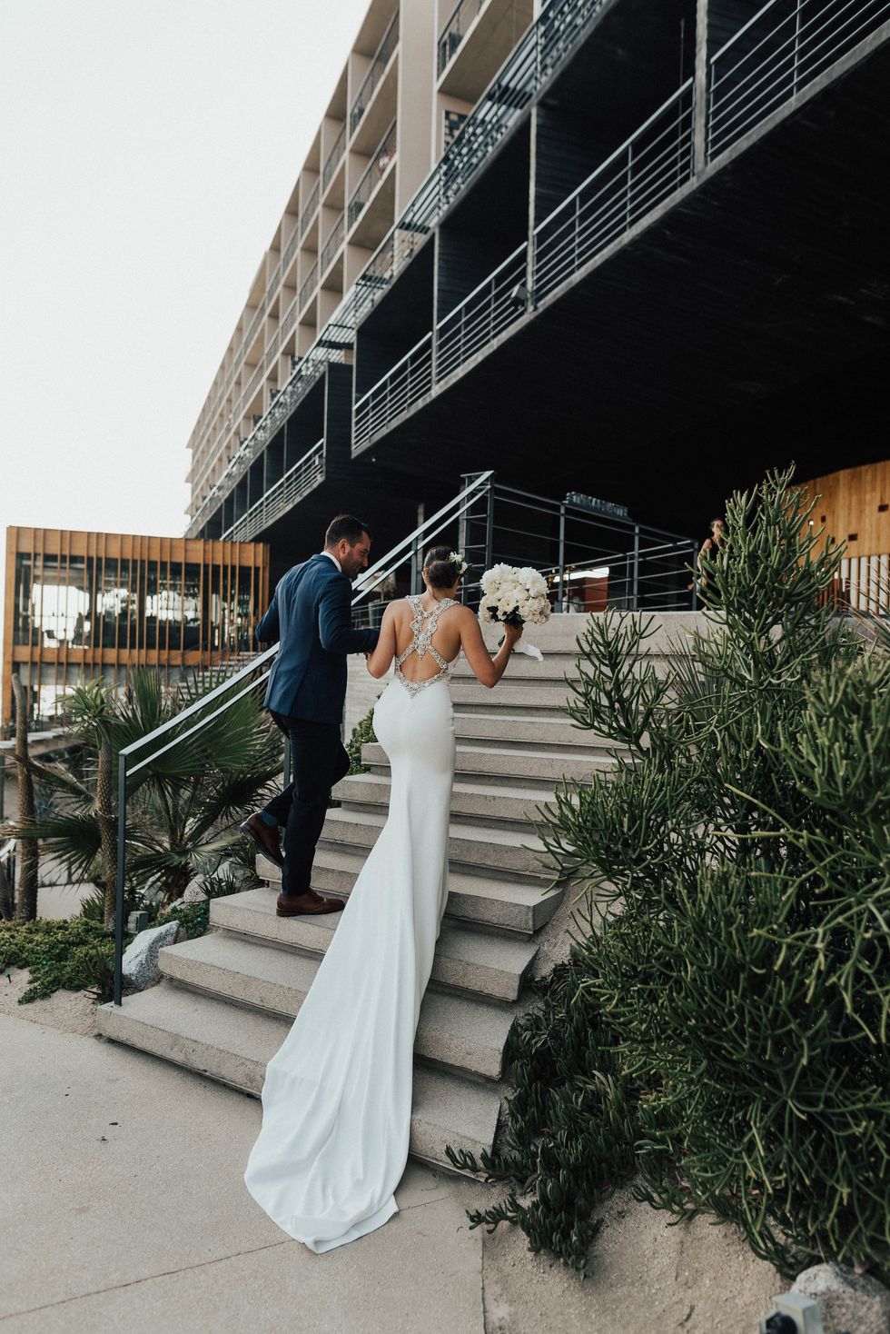 Anticipating that weddings can be too fleeting, Montalbo and Chansky wanted to make the most of their time with loved ones. As San Franciscans with family in Cabo—the bride's family owns a villa there—the Mexican vacation spot popular among Bay Areans was an easy option, and once they saw the Cape Hotel, they knew they had found their venue. As with most inspiration nowadays, Montalbo discovered the hotel on an Instagram feed.