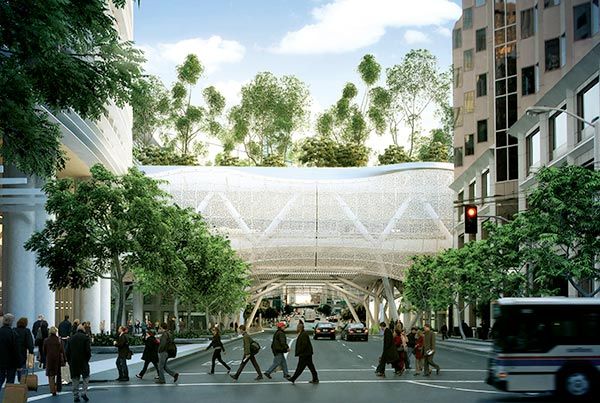Even John King, the San Francisco Chronicle’s sage architecture and urban design critic, is hard-pressed to find a discordant note in the project. While cautioning in believing developers’ hype and the promise of artistic initiatives, he says, “Transbay could add a whole new type of neighborhood to SF. It will create a genuine high-rise neighborhood rather than a bunch of autonomous buildings. There are really interesting spaces throughout—and the proposed design of the buildings could produce something different from slender shoeboxes that are stuffed with condos or apartments. It’s a place where people will want to live and, if they do live there, they won’t just be stuck in a tower because there will be a lively streetscape.”