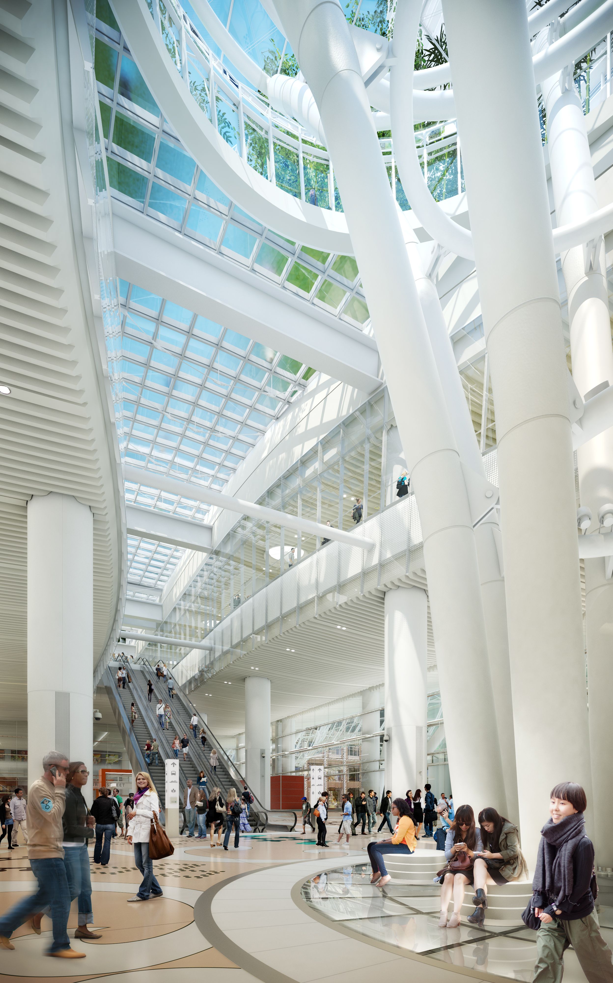 Design Highlights: The protruding and twisting windows will provide an interesting faceted effect. Instead of vast spans of mirror-like windows, the building will have many angles. “Light will play off the different surfaces, and the color and shading of the surfaces will change throughout the day according to the angle of the sun,” Gang says.
