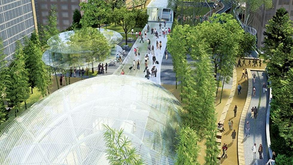But an interesting thing happened on the way to a new terminal. The state sold the parking lots that ringed the sites to pay for the construction—and developers eager to make their mark (and a lot of coin) hired notable architects who created a bevy of elegant, artistic, and, dare we say, important buildings (to land a deal, developers had to submit proposed designs). And to sweeten the pot, the property barons—Tishman Speyer, Boston Properties, and Related are just some of the heavy hitters on board—had to agree to include affordable housing, retail space, and green areas. The result is a civic-minded urban planner’s dream: Broad sidewalks with plenty of trees; a vibrant mix of shops and restaurants; walking trails and bike paths that crisscross the zone; and modern green space concepts—one park is being compared to New York City’s High Line, and the other is a five-block stretch under the bus ramp with groovy features, such as porch swings suspended from support beams). And there’s lots of housing—35 percent of which is set aside for low- and middle-income families—terraced housing, ranging from human-scale townhouses to high-rise buildings, promising an area that will be open and filled with light. Have you spotted the unicorn yet?