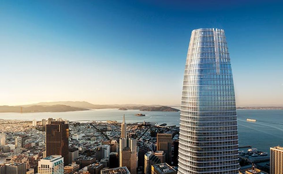 Building Notes: When complete, the Salesforce Tower, at 1,070 feet, will be the tallest skyscraper in SF and the seventh-tallest structure in the country. Named for its primary tenant, customer-management software maker Salesforce, it will radically change our skyline. Today when you come into the city from the Bay Bridge, you see a rolling cityscape, with the 853-foot-high Transamerica Pyramid topping the FiDi skyline. When Salesforce Tower is completed in 2017, your eyes will be drawn to the left of the pyramid to the new, and much higher, landmark and its neighbors, tipping the visual scale toward SoMa.