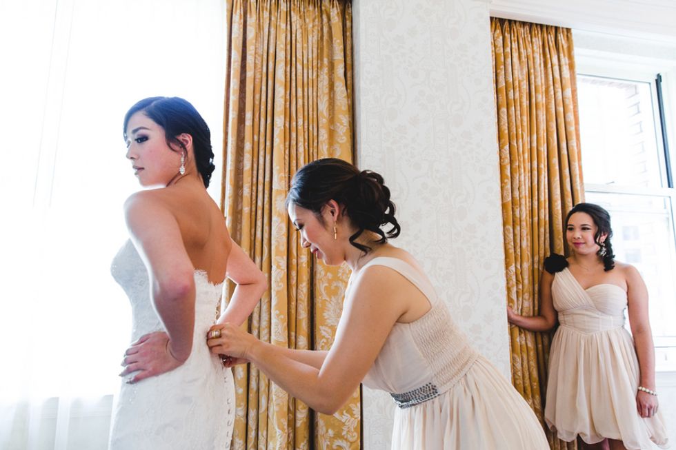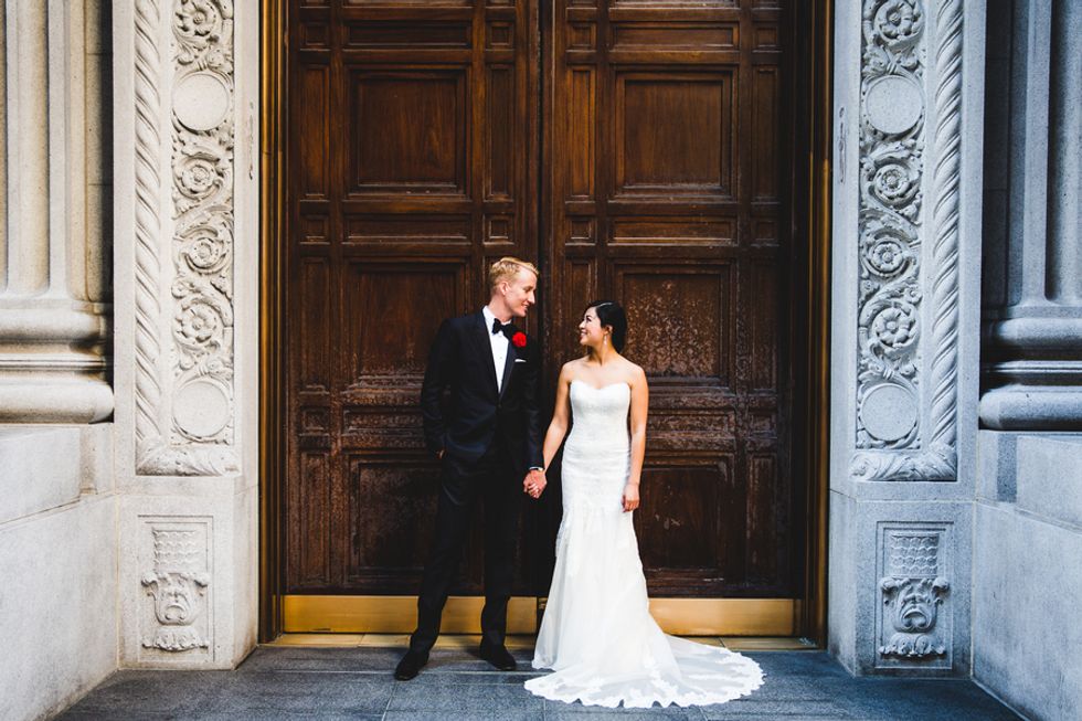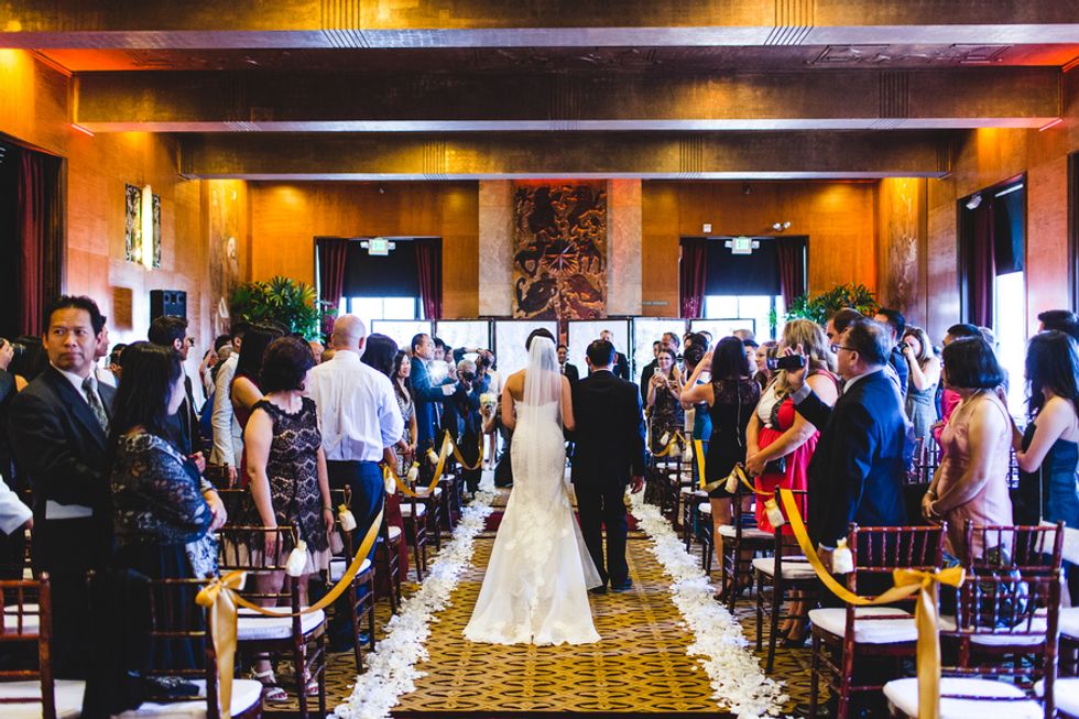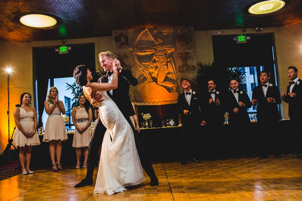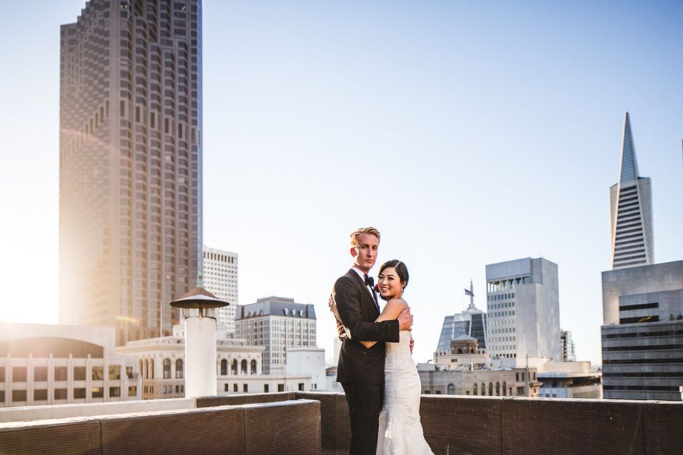 The ceremony and reception took place at the City Club of San Francisco, where the unique character of the space provided a rich and time-appropriate setting for the celebration. After the ceremony, the bride and groom escaped to the rooftop to capture breathtaking photos with the city skyline.