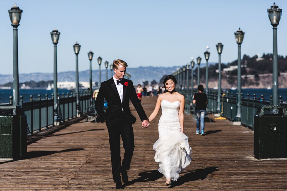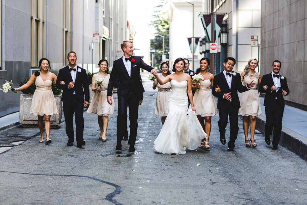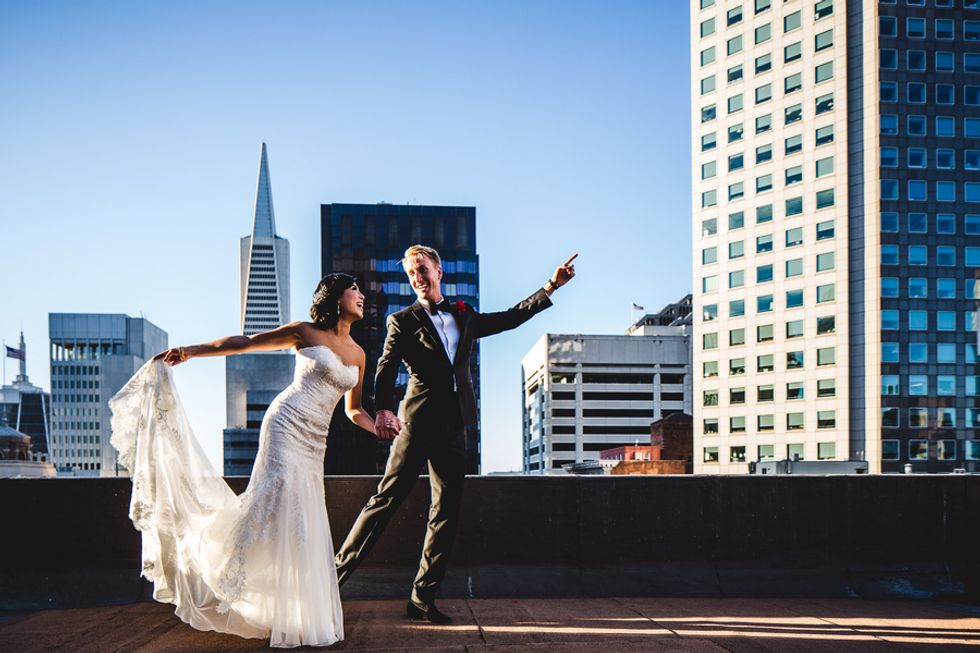 Judy and Andy's golden wedding day began on the streets of San Francisco – the perfect backdrop for their Gatsby-esque attire.
