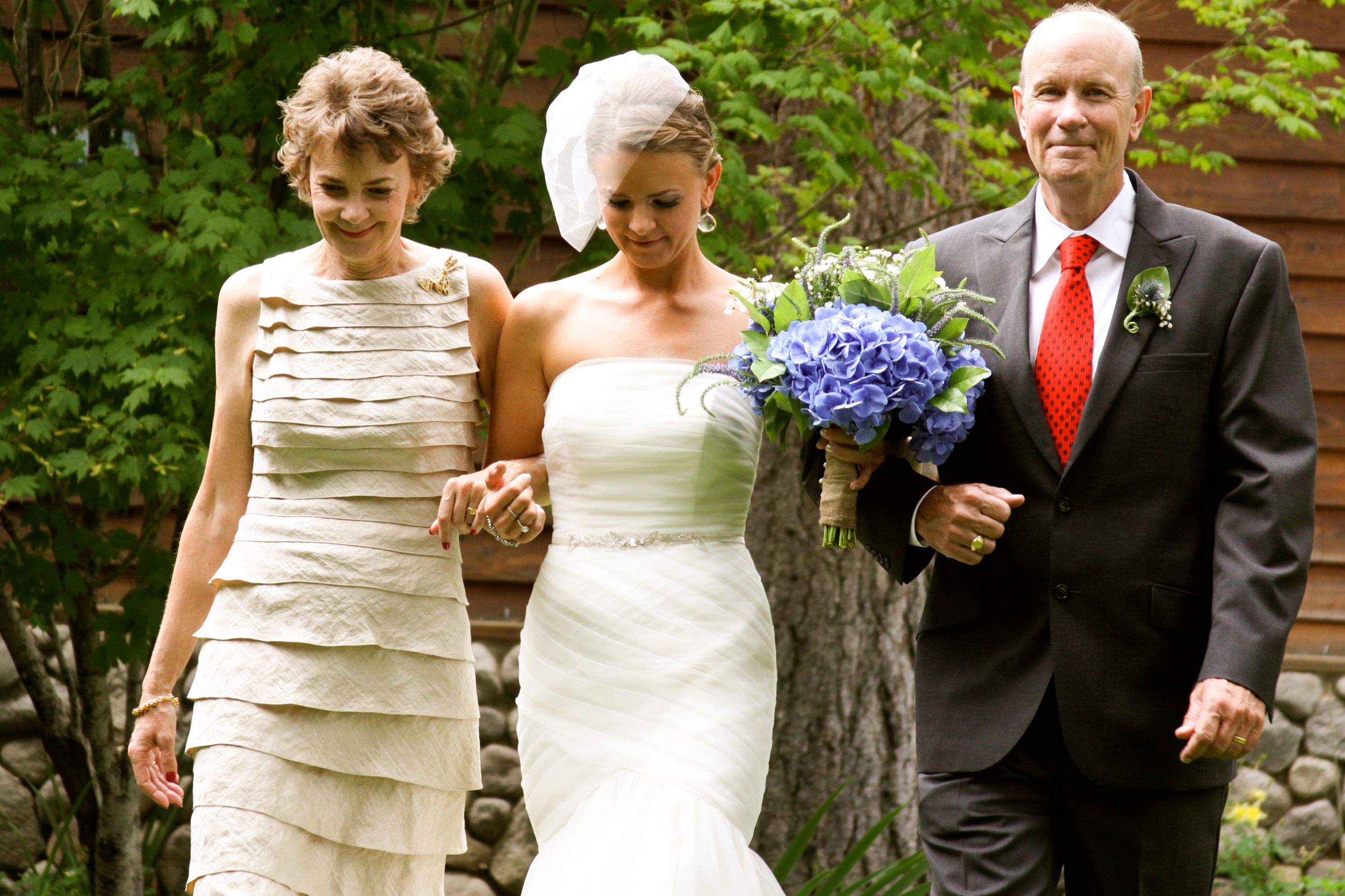 Planning the wedding was an exercise in Google documentation and the involvement of family and friends, since Nick and Hannah were living 500 miles apart during the entire process: He here in the city and Hannah in San Diego, with Nick's parents and now sister-in-law. The flowers were done perfectly by the couple's friend Pat Hayes, and mutual friend Owen Cunningham and an iPad officiated the ceremony. Hannah's parents tracked down and transported vintage blue and clear Mason jars from Portland and made the runners for the tables.