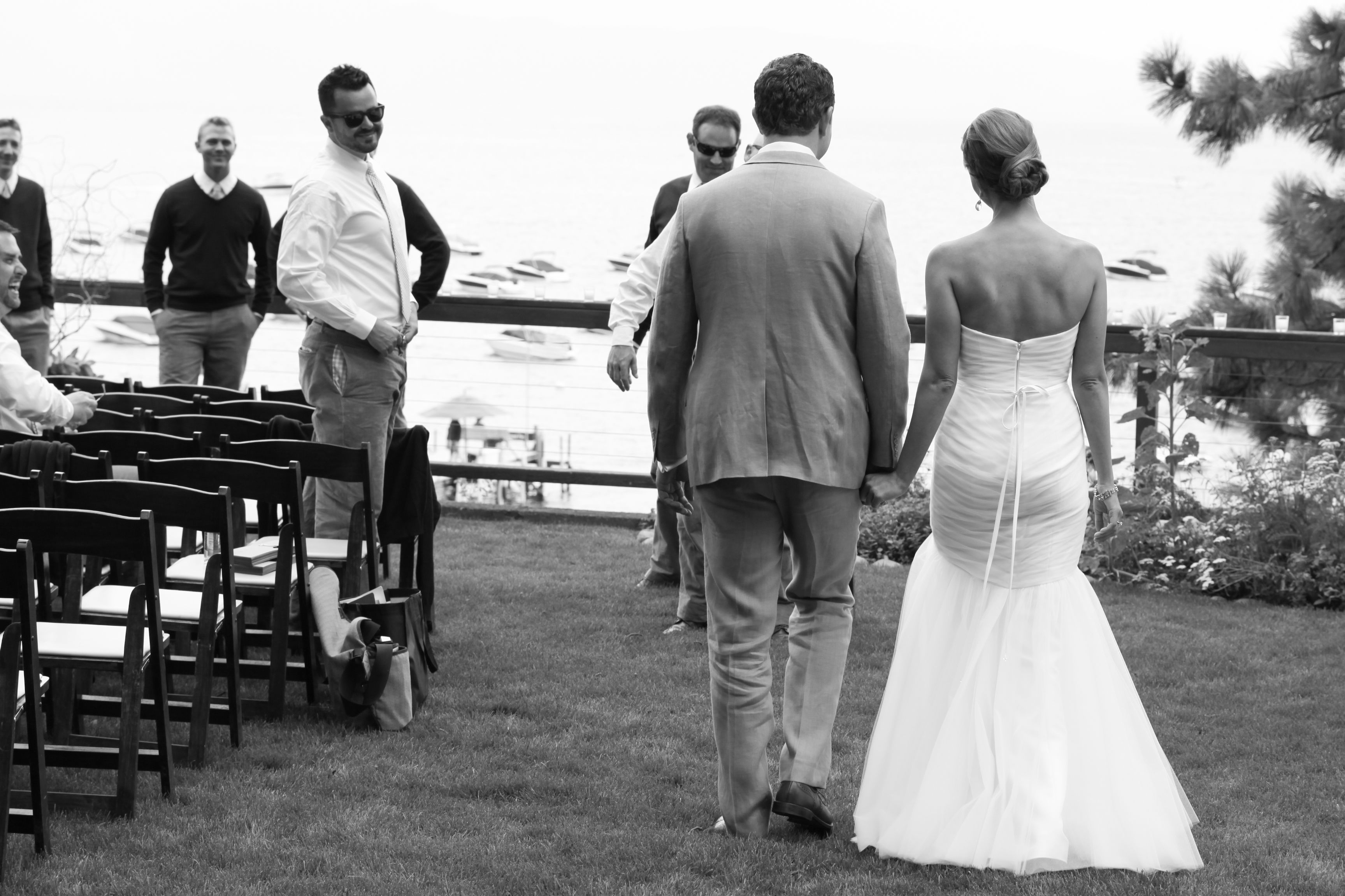 Despite getting married at a private estate on the north shore of Lake Tahoe, Nick and Hannah wanted to use as many San Francisco vendors as they could, so Hannah's gorgeous dress, the desserts, the chocolates for the s'mores and the groomsmen's pants were all made locally.