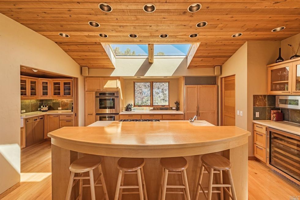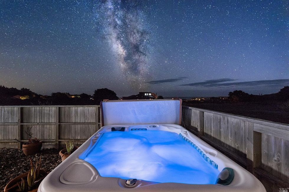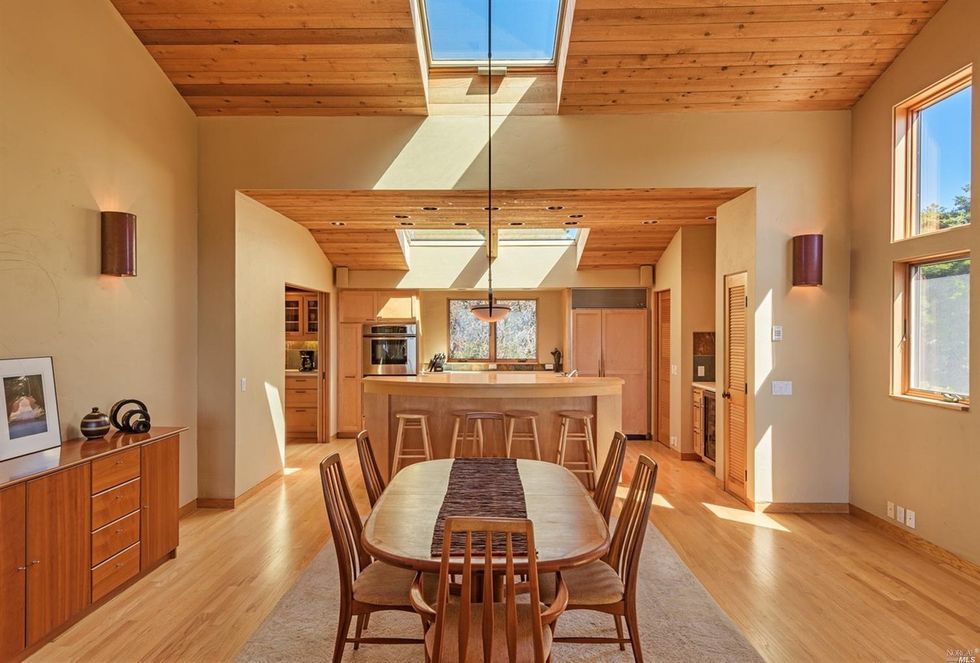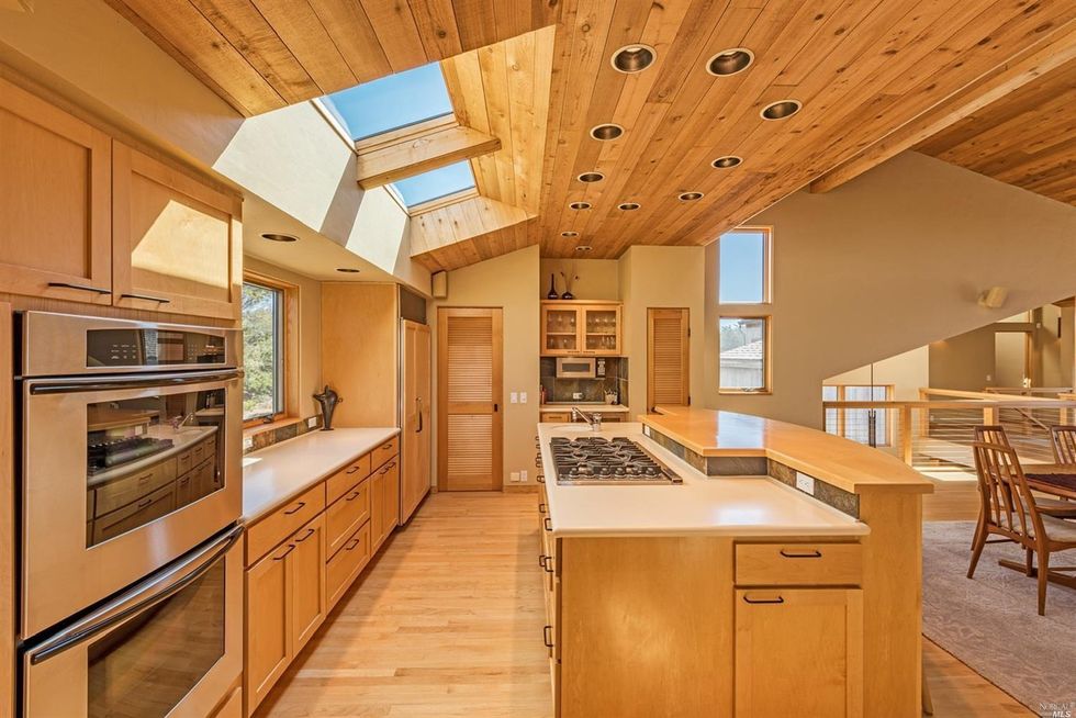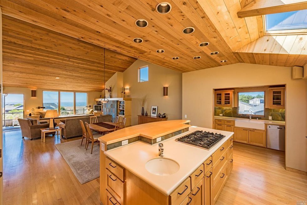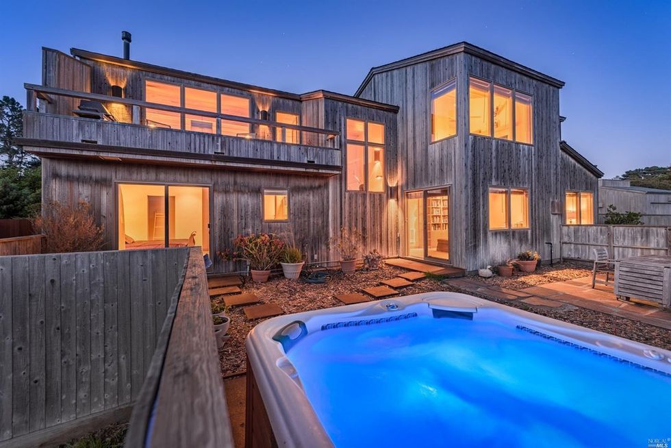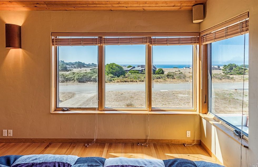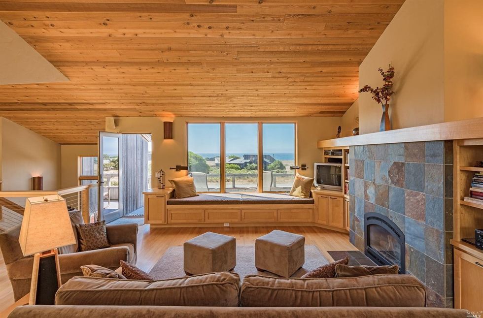 Gentle sunlight and a salty sea breeze coast in through endless windows, open-beam ceilings and skylights. This Sea Ranch home glows. Oozing tranquility, the space was designed with intention—with ocean and meadow views from nearly every window, hardwood floors and three fireplaces, there are multiple opportunities to achieve a zen state. And, with a neutral palette, the space allows for any type of decor style. Sit in the window seats in the living room to basque in sunshine, walk out onto the deck to gaze at the ocean, or count constellations while soaking in the hot tub.