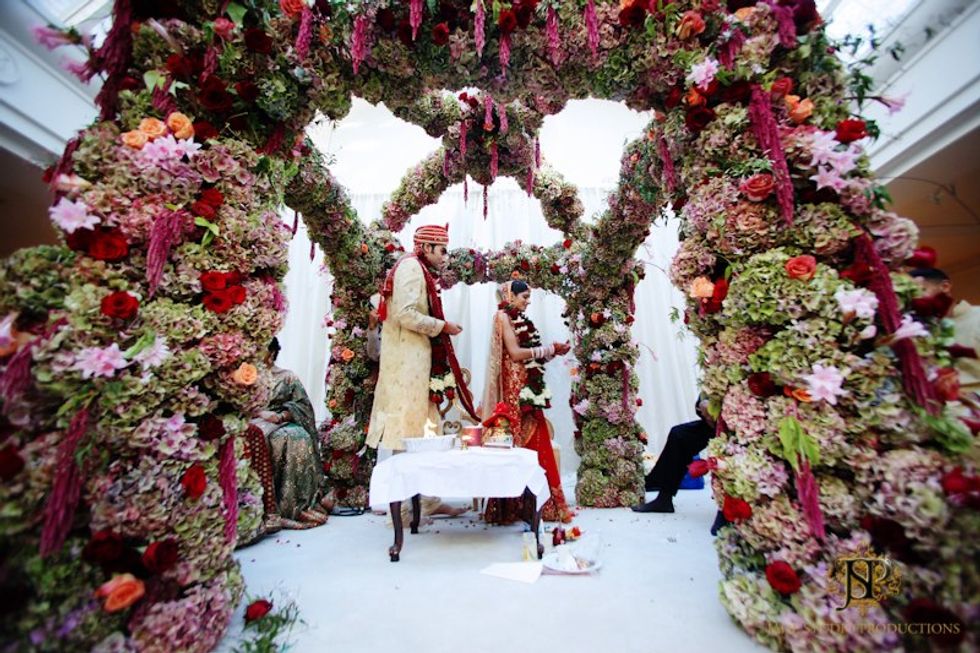 This spectacular South Asian wedding lasted three entire days starting with the traditional Sangeet on Friday. Every last detail from the sparkling jewels to the extravagantly painted henna tattoos on the bride's hands served a special purpose. The groom arrived atop a white horse, and later in a Buick Eighty Eight, as loved ones danced alongside.