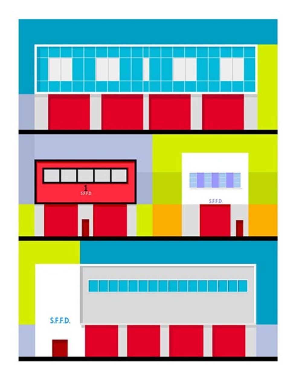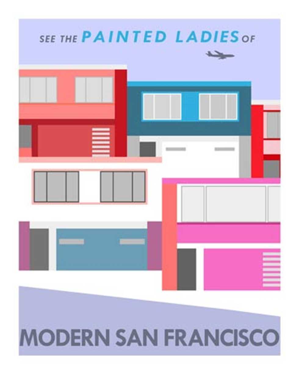 Murphy gives a younger generation of buildings due credit with his new colorful, limited-edition posters, which include The Painted Ladies of Modern San Francisco ($139 at ZincDetails) (above).