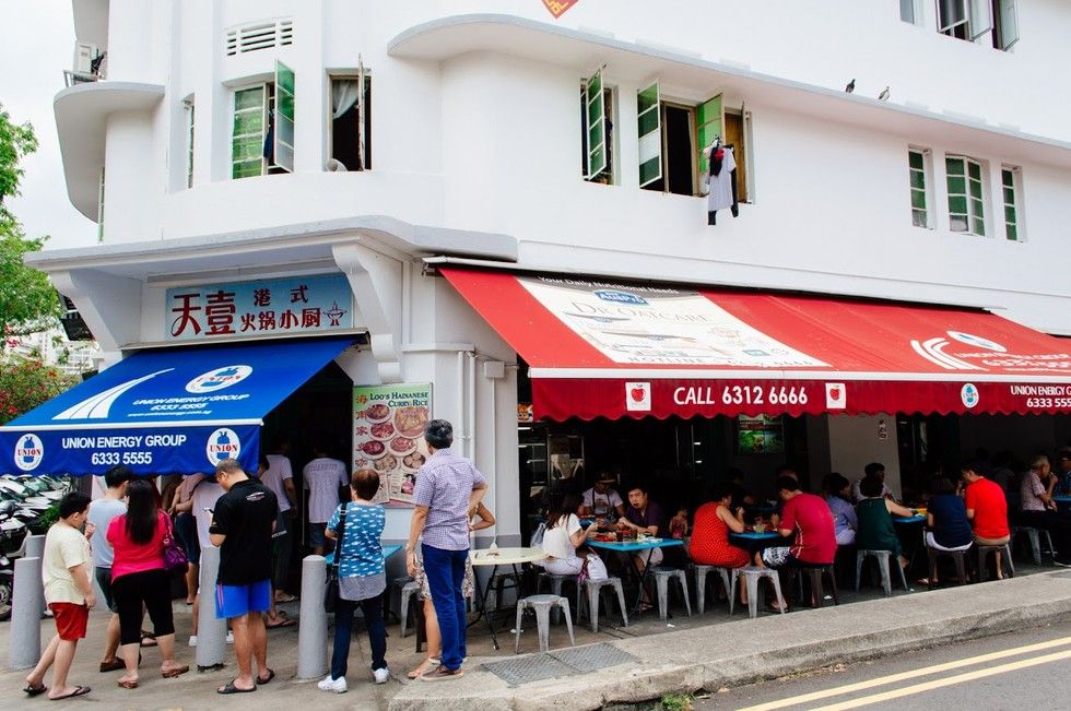 There's no name on the building, but the block-long line should tell you that something seriously delicious is going on here at Loo's Hainanese Curry Rice. The small menu on the wall displays some seriously janky-looking food photos, but don't be alarmed, everything here is next to stellar. Join the crowd to get your plate of succulent chicken, crunchy pork chops, or tangy prawn rice curry. Note, they open at 8am and close when everything is sold out, usually just after lunch time. // 57 Eng Hoon St. (Singapore)