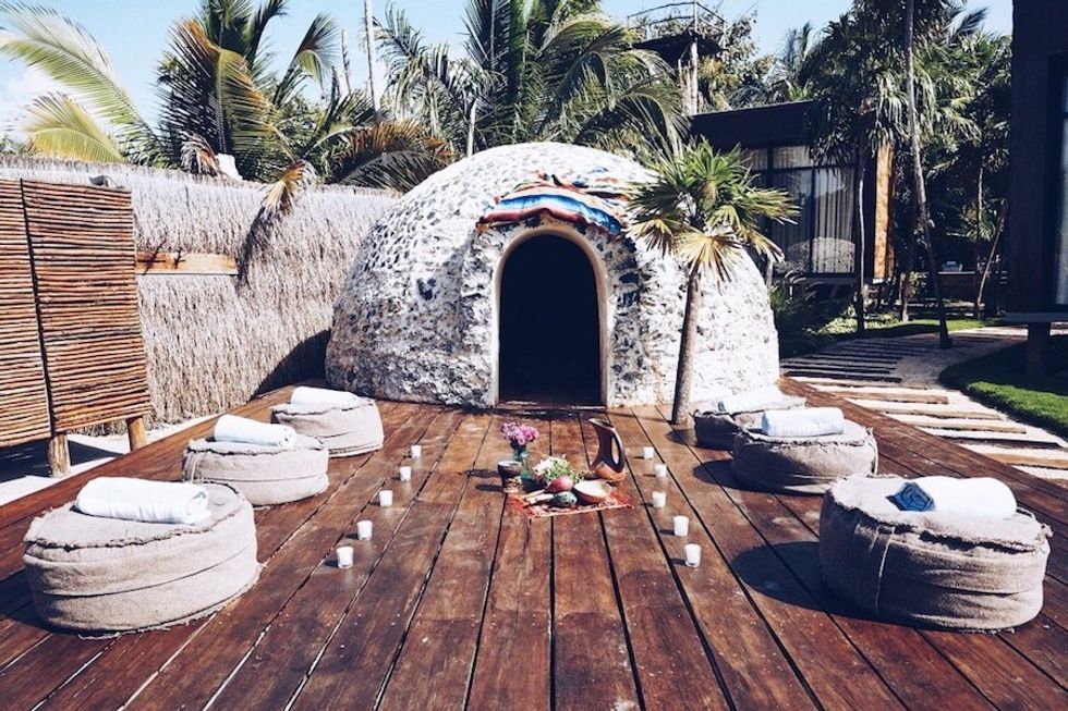 For hardcore wellness seekers, the ancient Mayan Temazcal ceremony seems like just the thing to do while on vacation in Tulum. Led by a shaman, the ceremonies take place in hotter-than-hell sweat lodges, where you'll be wafted with copal smoke and immersed in chanting until, eventually, you experience some kind of spiritual rebirth. Temazcal ceremonies are available all over Tulum: Try a low-key experience (250 pesos) at Ahau Tulum, or the special Open Moon ceremonies at the super-elegant Yaan Wellness (Km 10 Carreterra Tulum-Boca Paila), which also offers an enticing menu of less-sweaty spa services.